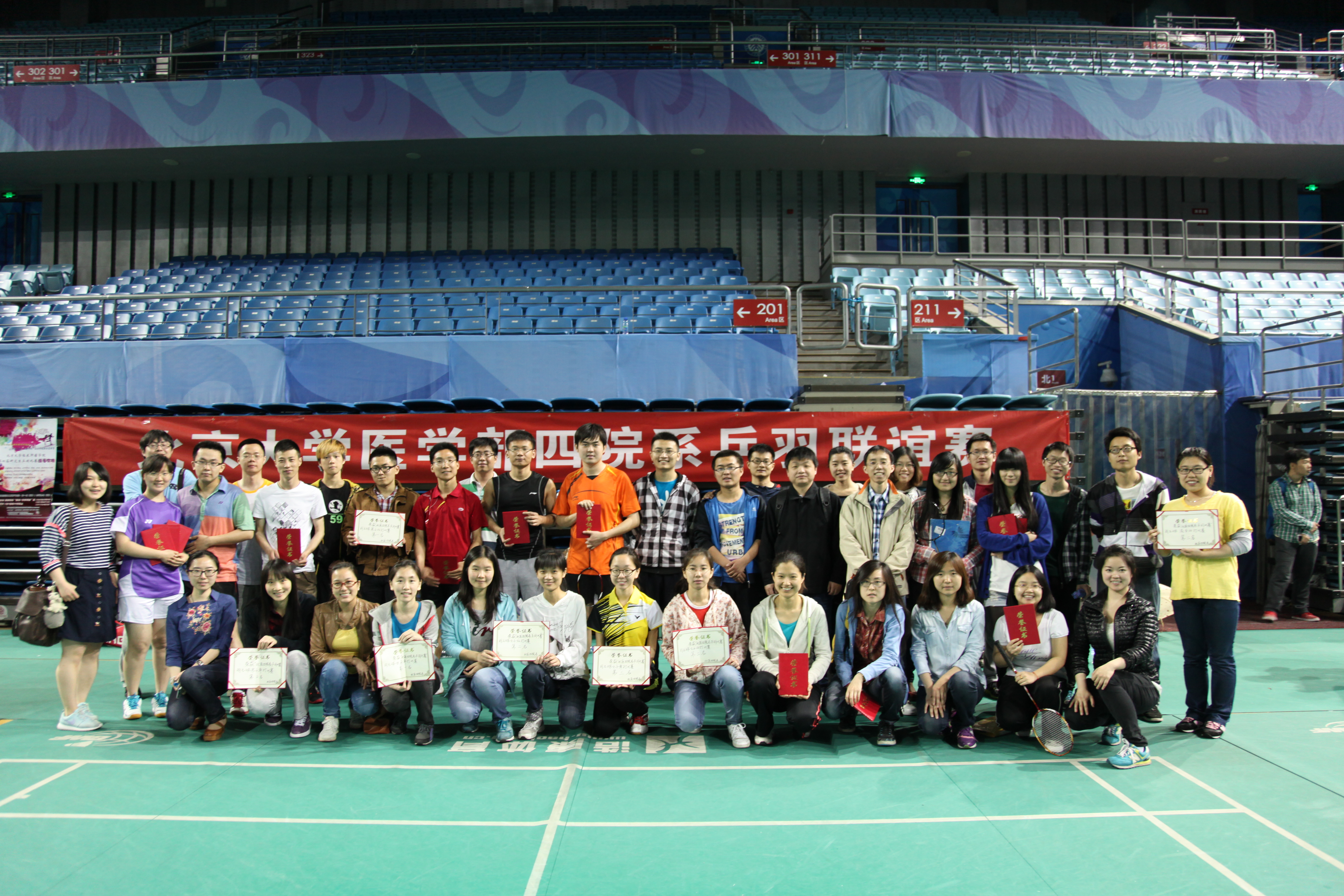 2014年5月11日上午10点,“北医四院系乒羽联谊赛”在北京大学邱德拔体育馆拉开帷幕。本次比赛是由公共卫生学院、临床肿瘤学院、药学院和口腔学院共同举办,并得到了各院领导的重视及学院各系、各部门的支持。比赛分为两部分---乒乓球赛和羽毛球赛,各分男单、女单、男双、女双、混双五个组别,赛制为三局两胜的淘汰赛,八进四,最后对决产生冠、亚、季军各一名。
