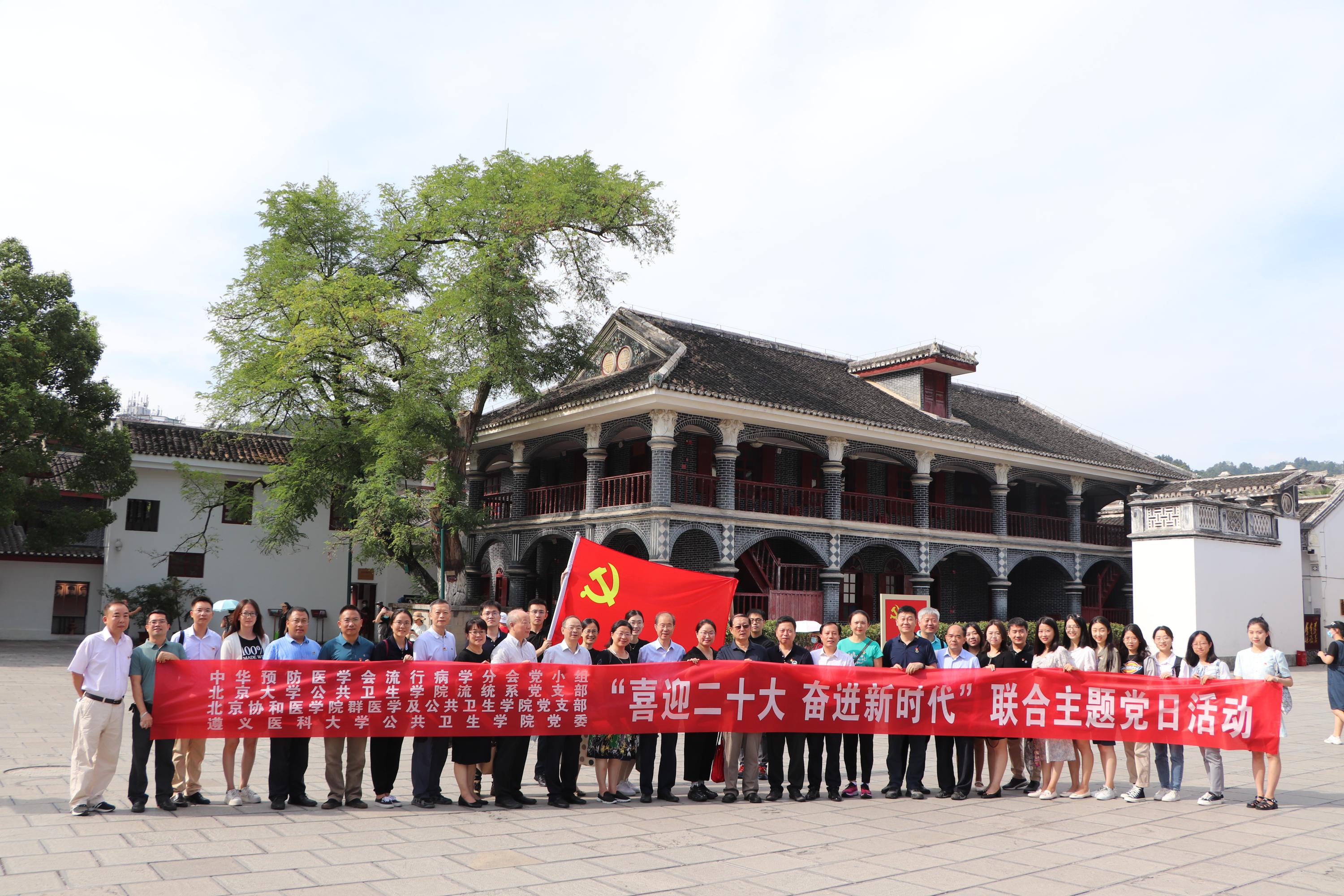 在骄阳似火的八月,喜迎中国共产党二十大到来之际,北京大学公共卫生学院流行病与卫生统计学系教工党支部联合中华预防医学会流行病学分会党小组、北京协和医学院群医学及公共卫生学院党支部、遵义医科大学公共卫生学院党委,齐聚红色革命圣地、历史文化名城贵州省遵义市,举办了“喜迎二十大、奋进新时代”主题党日活动。