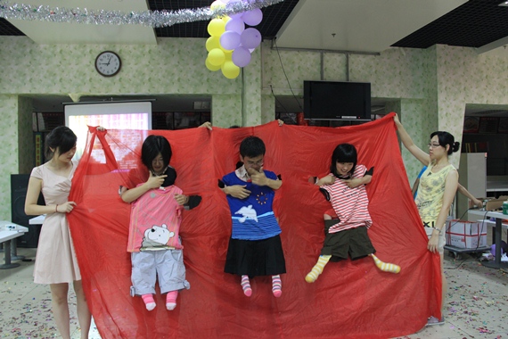 接下来是社医卫管班带来的《小人舞》,由杨蕾等六个同学进行了表演。在一个红色幕布的遮挡下,三个同学露出了头和胳膊,来扮演小人,另三位同学用穿着袜子的胳膊来表演小人的腿。随着音乐的跌宕起伏,三个小人彼此配合,表演出了各种搞笑的的动作和表情,引来现场一片欢声笑语。接下来还进行了瞎子背瘸子、传词、兔子舞等项目,让现场的同学们过足了游戏和舞蹈的瘾。