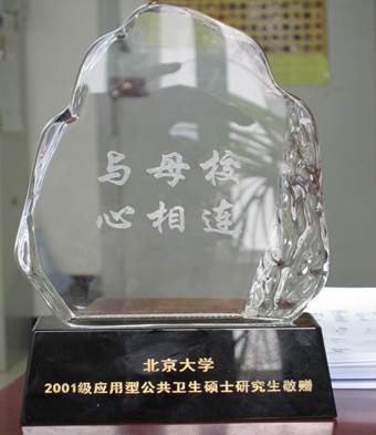 上午9点半,座谈会正式开始。虽然已十年少有联系,但校友之间似乎并不生疏,他们纷纷谈起自己的工作、生活,以及十年来的感触。相同的职业背景给了他们不同的经历,然而在谈到母校的支持、硕士三年的收获时,校友们纷纷表示赞同和感谢。并表示,他们会在今后的学习工作中不断地关注学院的发展、建设,在自己的岗位上踏实努力,以优秀的工作成绩来回报学院的栽培。座谈会上,郝卫东副院长和陈娟副书记分别对学校、学院十年的变化进行了简要的回顾。郝卫东副院长说,学校、学院的发展离不开校友的支持,激励大家要学以所用,为社会、作出自己应有的一份贡献,希望各位校友对学校和学院给予更多的关注。陈娟副书记代表公共卫生学院衷心希望大家常回家看看并祝校友们健康幸福。最后,毕业生们向学院赠送了纪念水晶碑。在轻松热烈的气氛中,座谈会结束。