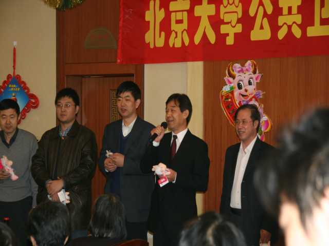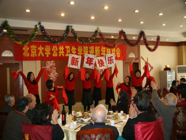 岁末2008年12月30日中午鸿运楼烤鸭店里热闹非凡,公共卫生学院大家庭的男女老少历史上第一次大聚餐!“(一)要感谢改革开放30年的伟大成就,才使得我院今天有能力和机会来举办这样一个活动。(二)要感谢老天爷在数九寒天给了我们一个风和日暖的好天气,使许多老同志们也能方便参加聚会 。”徐善东副院长精辟的开场白。