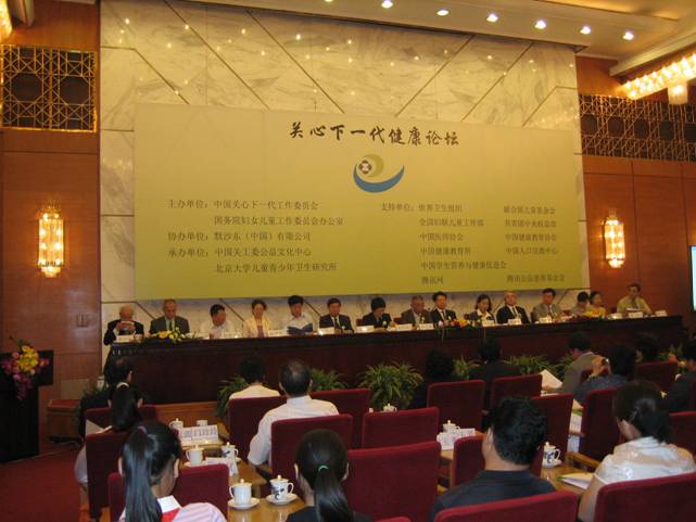 2008年“六一”儿童节,为贯彻《中共中央国务院关于进一步加强和改进未成年人思想道德建设的若干意见》和《中共中央国务院关于加强青少年体育增强青少年体质的意见》精神,推进《中国儿童发展纲要》的实施,动员全社会关怀灾区儿童,关心下一代健康成长,由中国关心下一代工作委员会和国务院妇女儿童工作委员会办公室主办、默沙东(中国)有限公司协办、北京大学儿童青少年卫生研究所承办的“关心下一代健康论坛”在北京人民大会堂新闻发布厅举行。近300位校长、教师和学生代表参加会议。