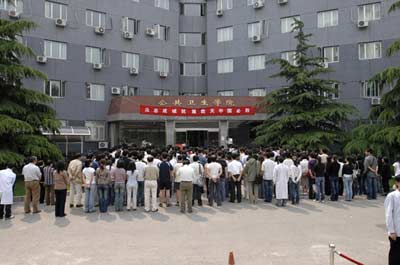 5月19日上午,学院在公卫楼前悬挂起了横幅“众志成城 抗震救灾 中国必胜”。下午14:20学院在校的老师和学生排列在学院门口,举行集体悼念活动,王燕书记宣读了对学院全体共产党员、共青团员的倡议书。14:28大家集体默哀三分钟,寄托对5.12地震中殉难同胞的哀思。仪式结束以后,大家一起到卫1教,胡永华院长给大家做动员,号召大家认真学习有关知识武装自己,时刻准备,用实际行动支援灾区、报效祖国。随后,流行病与卫生统计学系的刘民教授举行了关于灾害发生后疾病防疫知识的讲座,这是学院组织的抗震救灾系列知识讲座的第一讲,包括“现场消毒”、“地震灾害救生”等系列讲座将在近期举行。