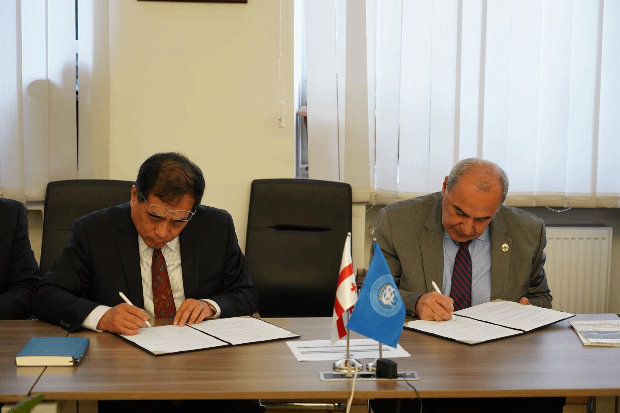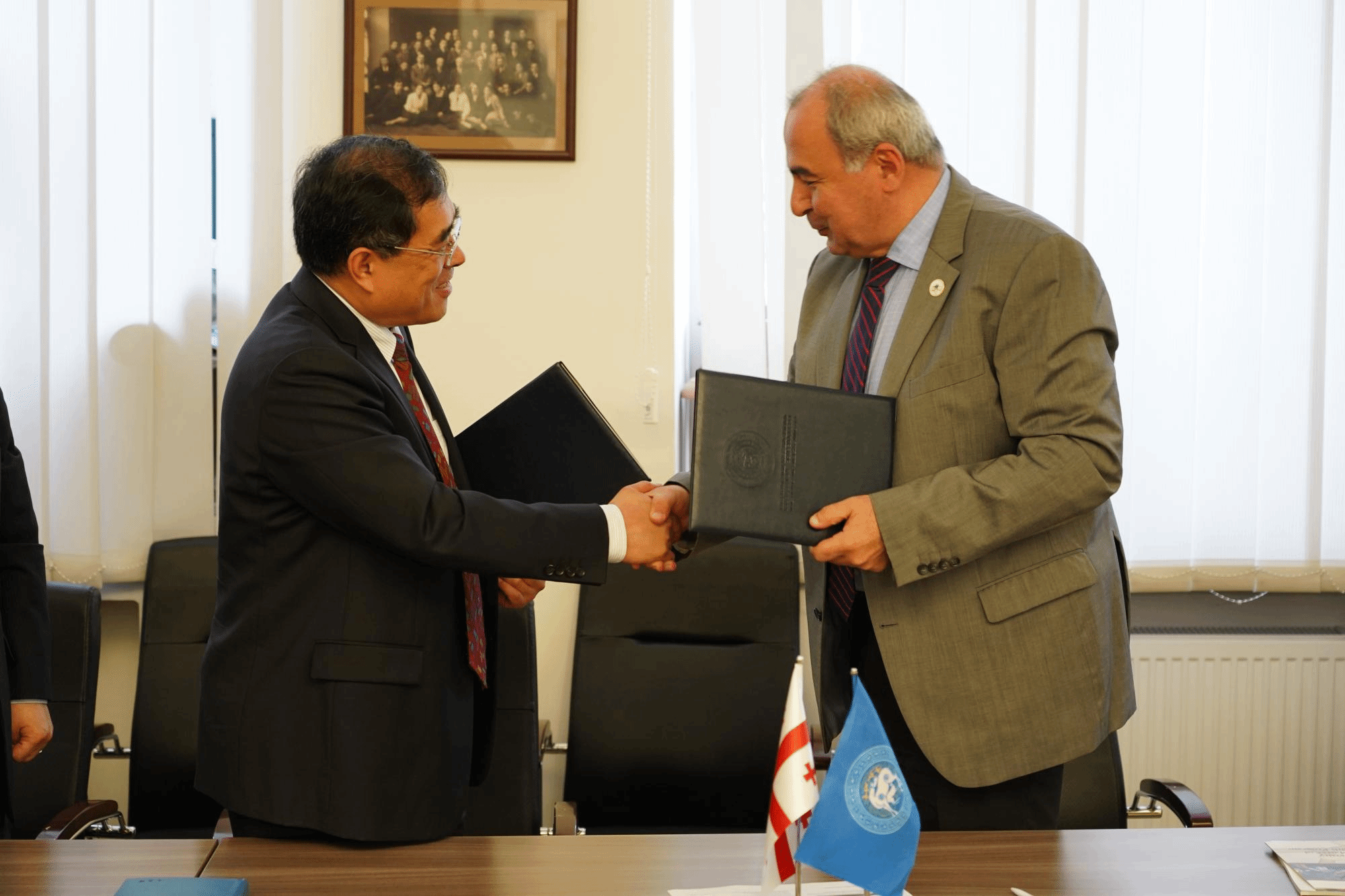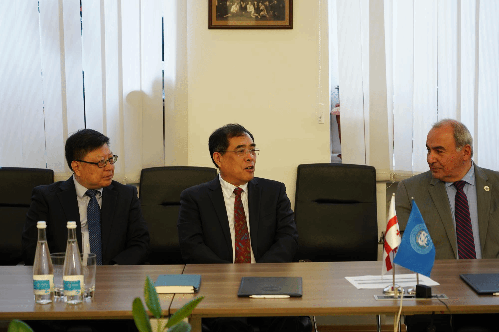 北京大学与格鲁吉亚第比利斯国立大学(Tbilisi State University)的战略合作伙伴关系谅解备忘录签署仪式于6月18日在格鲁吉亚第比利斯举行。格鲁吉亚第比利斯国立大学校长George Sharvashidza和北京大学公共卫生学院副院长王志锋分别代表双方学校签署了战略合作伙伴关系谅解备忘录。出席签署仪式的还有格鲁吉亚第比利斯国立大学副校长Nino Okribelashvili、医学院院长Dimitri Kordzaia、公共卫生学院Nino Chikhladza教授,北京大学公共卫生学院全球卫生系主任郑志杰教授、郭岩教授,以及北京大学和第比利斯国立大学各院系教师代表。