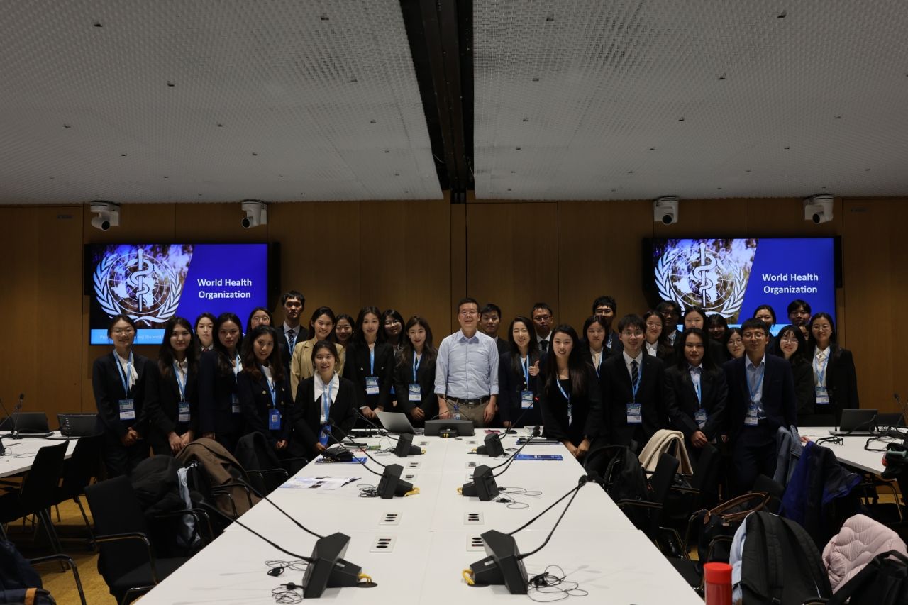 2025年10月28日,由世界卫生组织(WHO,简称世卫组织)和联合国协会世界联合会(WFUNA)共同举办的 2025模拟世界卫生大会(Global Model WHO 2025)在瑞士日内瓦世界卫生组织总部开幕。来自北京大学预防医学、临床医学、口腔医学和医学英语专业的30余名师生代表出席开幕式,并在为期4天的大会中模拟不同国家代表,为应对全球卫生挑战和解决全球卫生问题贡献北大青年智慧,发出北大青年声音。