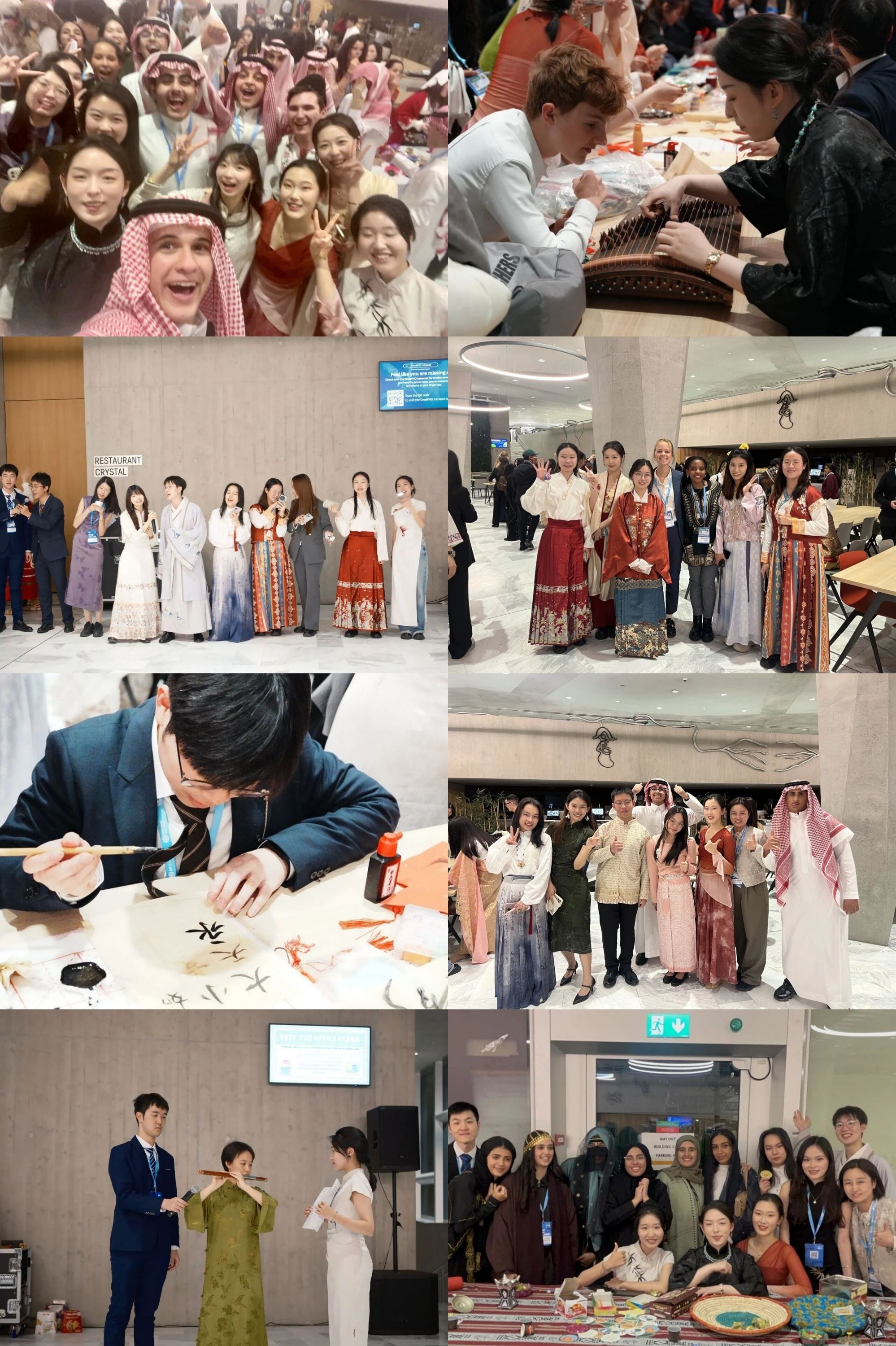 10月29日晚,代表团师生积极参与到文化交流活动中,向外国友人展示香囊制作、软笔书法等中华传统文化,演唱中国传统歌曲,通过民族乐器演奏、歌曲演唱、扇子舞等多种形式充分展现了中华文化的魅力。