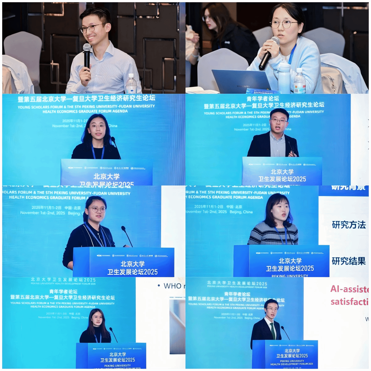 “北京大学卫生发展论坛2025青年学者论坛暨第五届北京大学—复旦大学卫生经济研究生论坛”由北京大学和复旦大学联合主办,自征稿启动以来共收到来自复旦大学、北京大学等近30所知名高校的91篇投稿。经论坛学术委员会组织权威专家进行匿名评审,最终评选出12篇优秀论文进行现场口头汇报,另有25篇参与壁报展示交流。