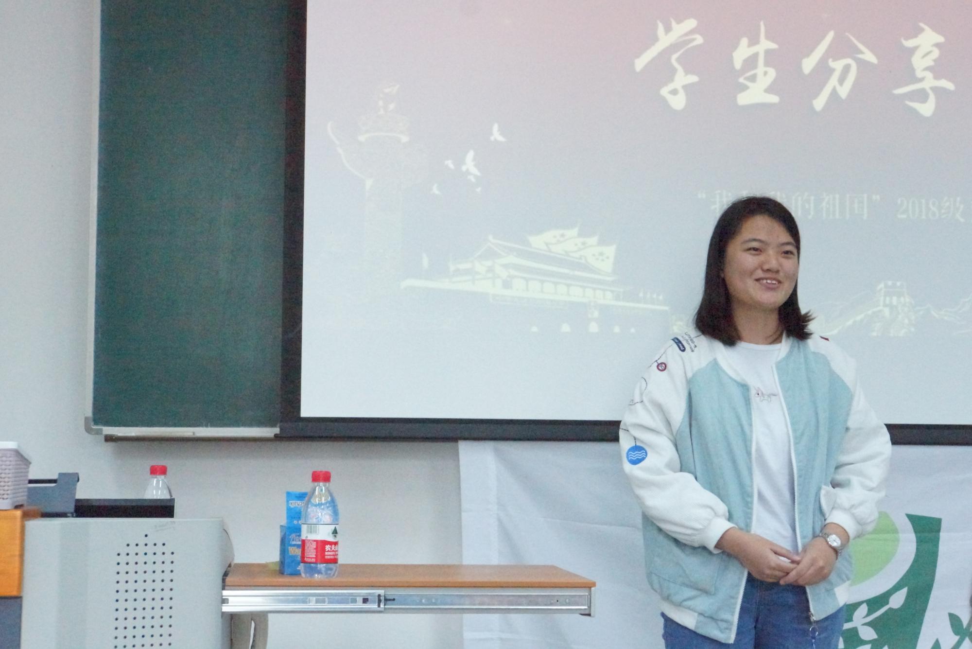 活动第二部分,班级同学分享新学期开学初参加学校新中国成立70周年庆祝活动和学院组织的赴西柏坡和香山思政实践活动的感受和收获。有的同学在十一当天参加了学校的升旗仪式并在跃进厅收看电视直播;有同学在假期观看了电影《我和我的祖国》、《攀登者》、《中国机长》;有同学在祖国大好河山游历领略祖国的风华。提到西柏坡和香山革命纪念馆,各位同学各抒己见,既有对历史观的思考,也有对学校开展思政实践活动的肯定,言语中尽是对革命先辈的崇敬和对全中国人民共同奋斗谋取的来之不易的美好、安定、和谐、幸福生活的珍惜。