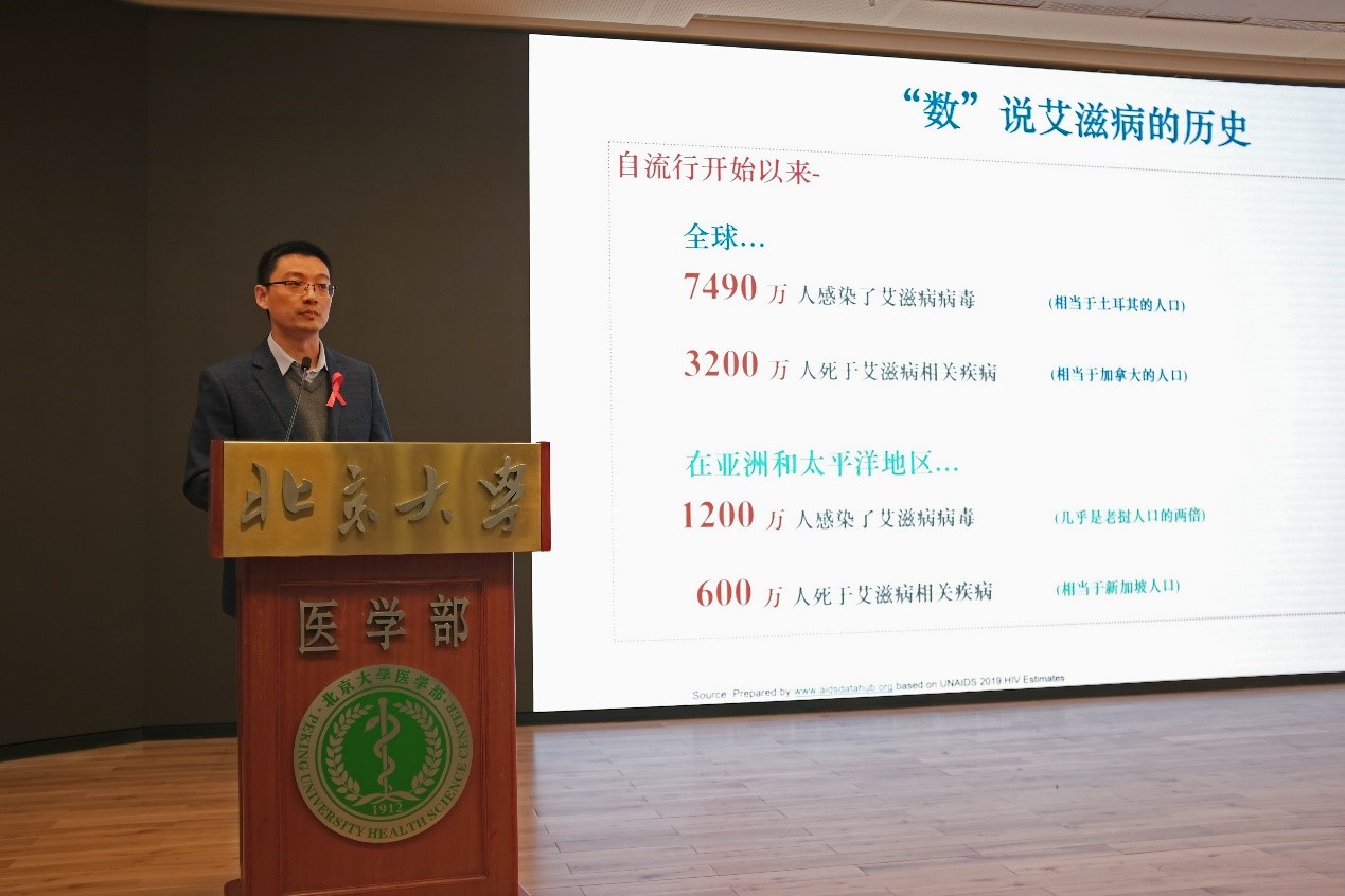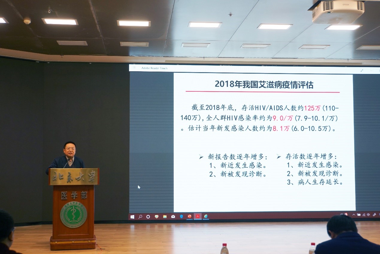 随后,中国疾病预防控制中心艾防中心副主任、著名艾滋病专家汪宁教授,以《HIV/AIDS科学认识和有效防治》为题向大家做专题报告,分别就艾滋病对人群和个体的健康危害、艾滋病病毒感染传播与诊断,以及艾滋病病毒高变异特征四个方面进行讲解。汪教授告诉同学们在阻止艾滋病传播的措施中,预防最为重要也最为有效。他也鼓励在坐的北大学子能够在今后致力于防治艾滋病的研究,为防艾事业做出更大贡献。
