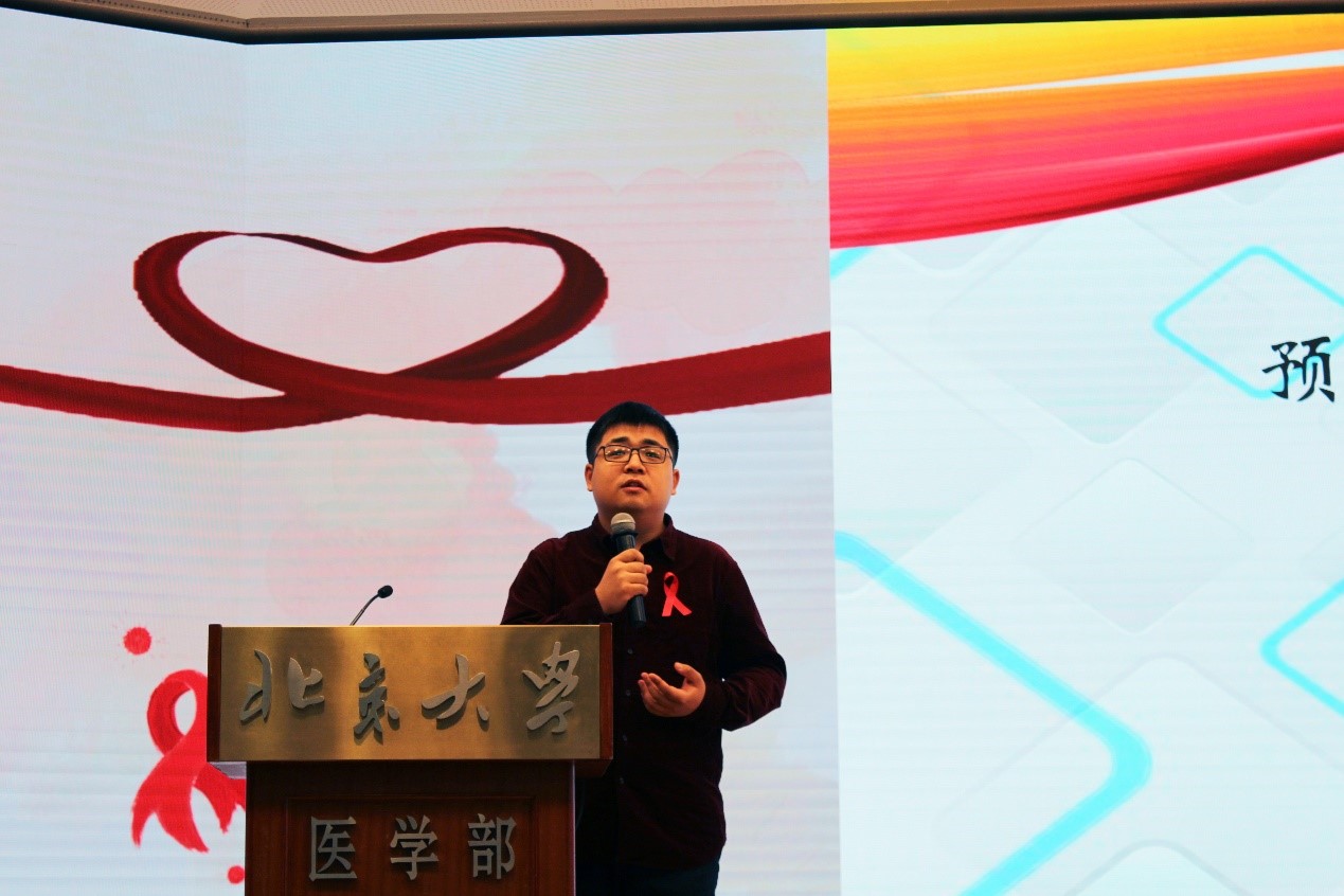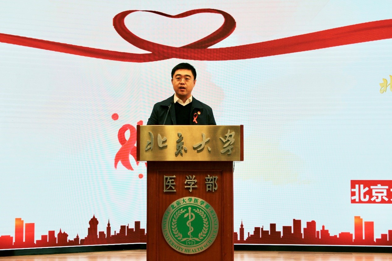 首先,北京大学团委副书记、医学部团委书记陈磊老师致辞。陈磊老师对公共卫生学院师生十七年的防艾宣传工作表示肯定,并号召广大青年学子都能够行动起来,一起加入到防艾的队伍中,履行医学生的神圣职责,共同为建设健康中国做出应有的贡献。