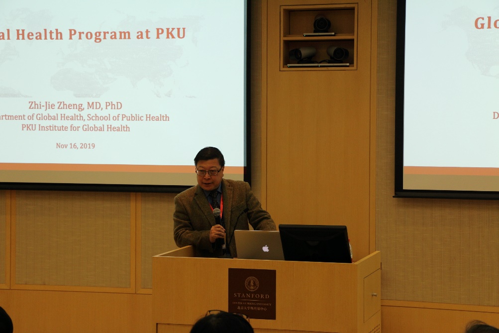 北京大学公共卫生学院全球卫生学系郑志杰教授介绍了北京大学全球卫生项目概况及医学部全球卫生系的发展。