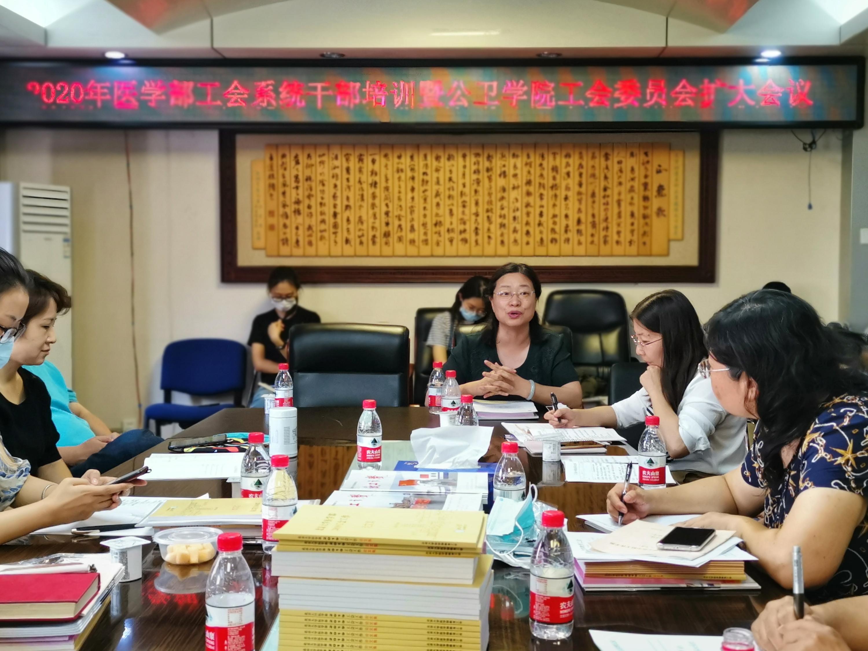 在学院工会委员会扩大会议中,学院工会常务副主席闫蕾首先总结了上半年学院工会工作情况,布置了新常态下的公卫学院新学期工会工作。工会干部们结合培训内容,各自对半年来的工作生活情况进行简短交流。