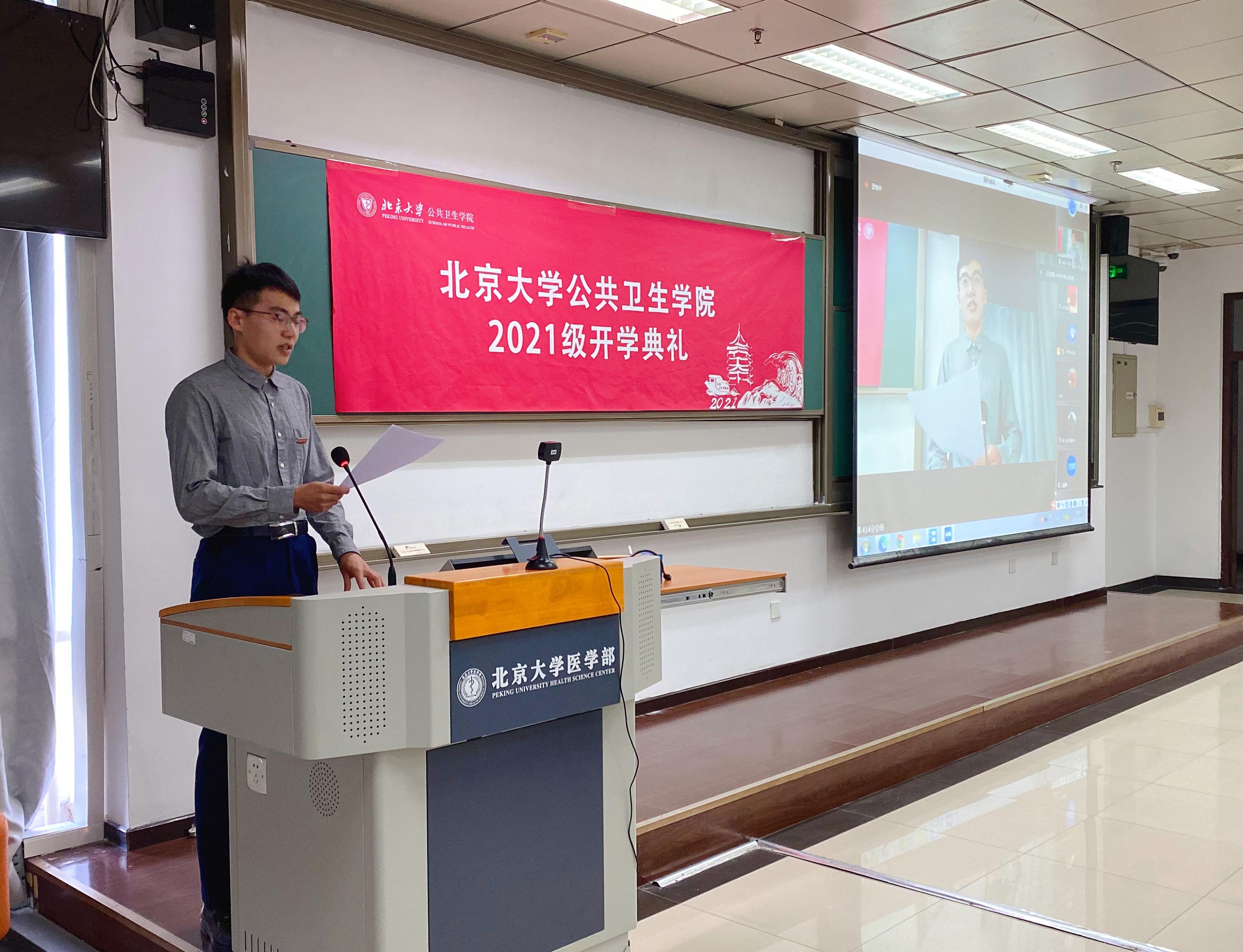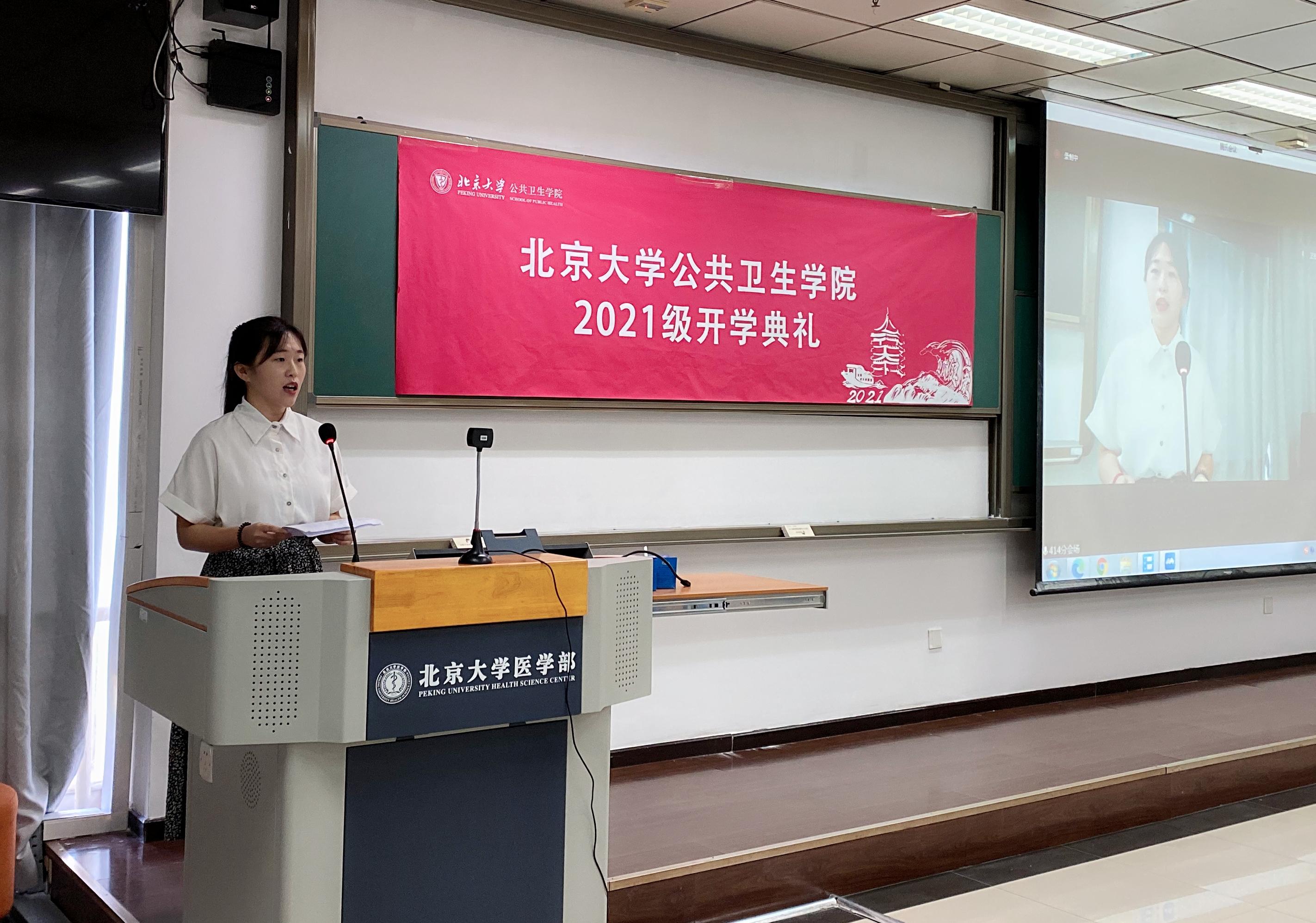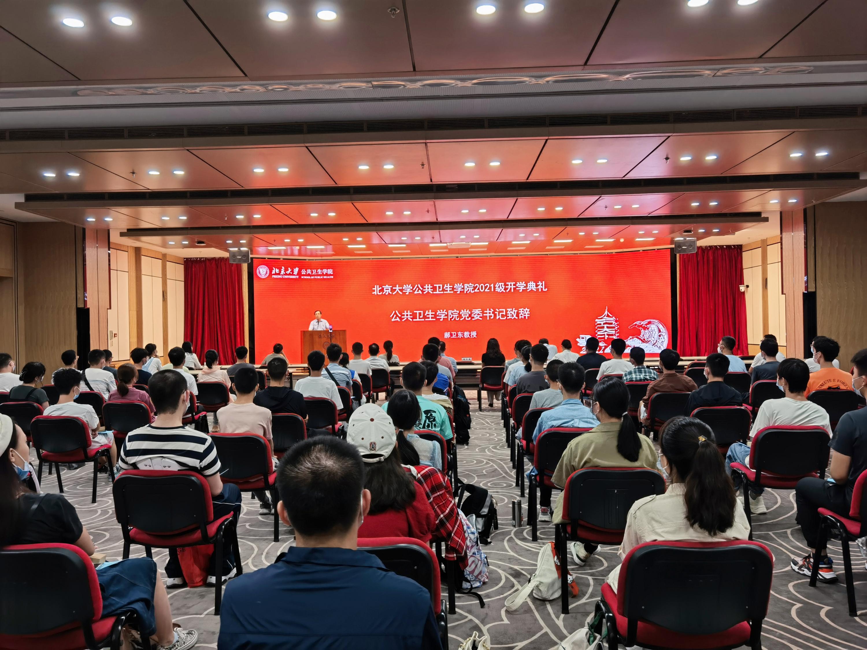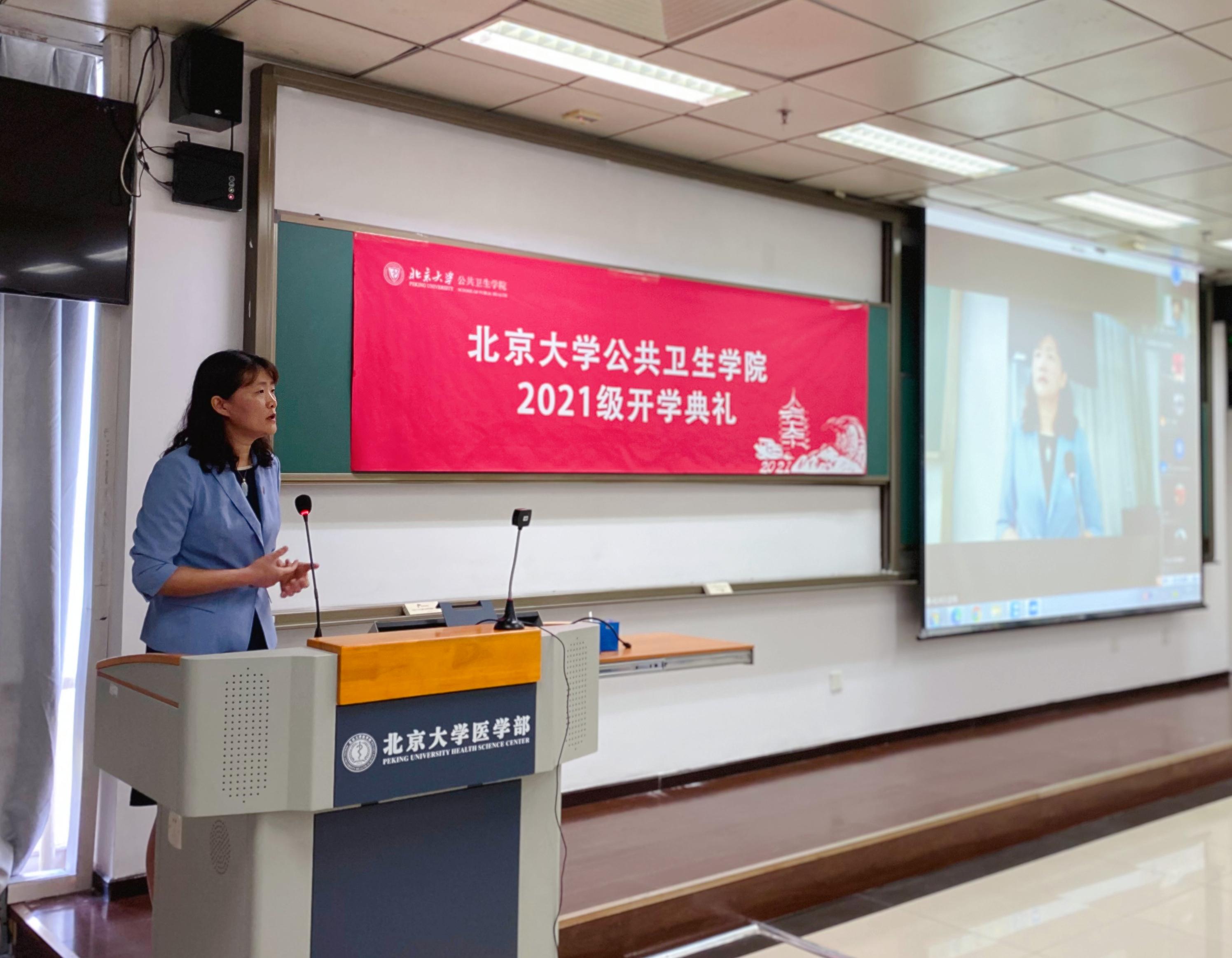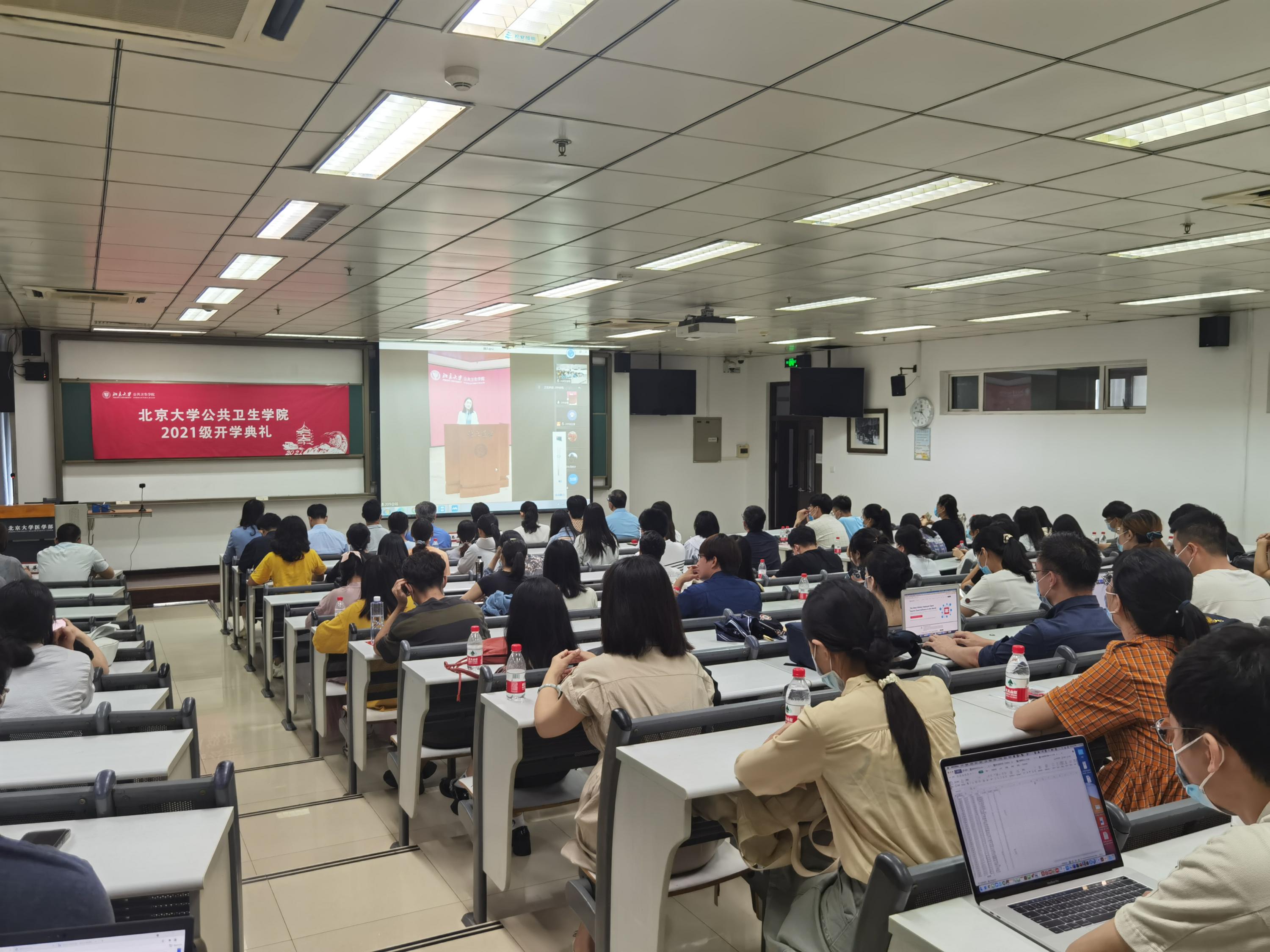 2021年9月3日上午,北京大学公共卫生学院2021级新生开学典礼在医学部逸夫楼209报告厅和逸夫楼414教室顺利举行。北京大学公共卫生学院党委书记郝卫东、副书记詹思延、副院长王志锋、副院长任涛、院长助理许雅君、院长助理简伟研、劳动卫生与环境卫生学系副主任贾光、营养与食品卫生学系主任马冠生、妇幼卫生学系主任王海俊、社会医学与健康教育系副主任常春、卫生检验学系主任崔富强、儿童青少年卫生研究所副主任马迎华、生育健康研究所副所长王琳琳、全球卫生学系主任郑志杰、生物统计系主任周晓华以及公卫学院行政办公室的老师们参加了典礼。本次开学典礼由学院党委副书记张景怡主持。