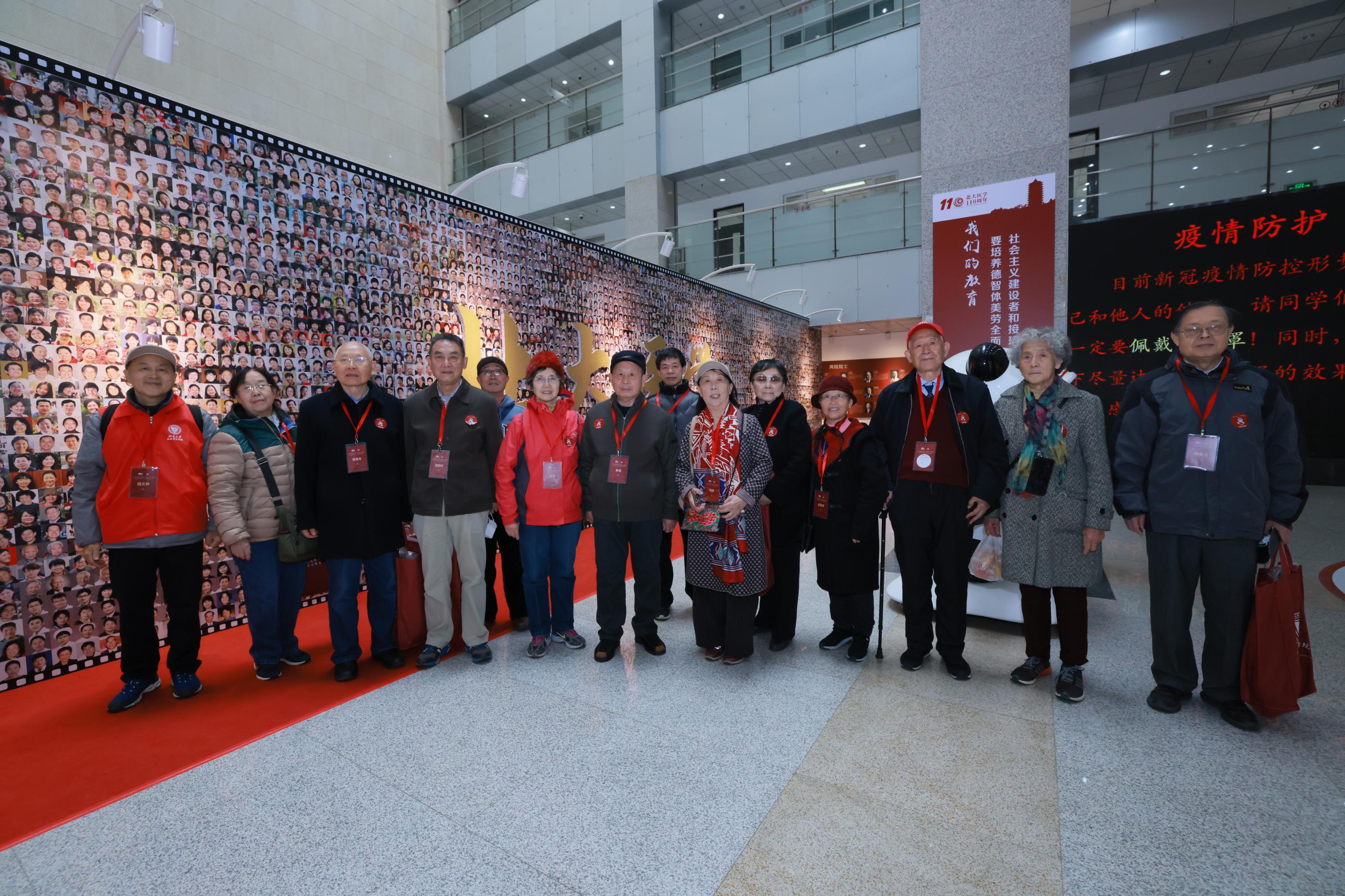 欢迎仪式结束后,校友们在师生志愿者的带领下参观了西门厚道石、医学科技楼、淑范医学图书馆、逸夫楼、跃进厅、综合体育馆、新老公卫楼,观看百年历程展、现代医学博物展等。故园重游,校园气象更翻新。久别重逢,空气里都满是喜悦音符。每一个点头致意,每一句寒暄问候,每一次激动挥手,每一轮比心合照,都让人恍惚间梦回当年。恰同学少年,风华正茂,挥斥方遒!