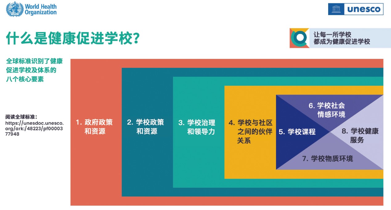 (图2 世界卫生组织和联合国教科文组织倡导建设健康促进学校)