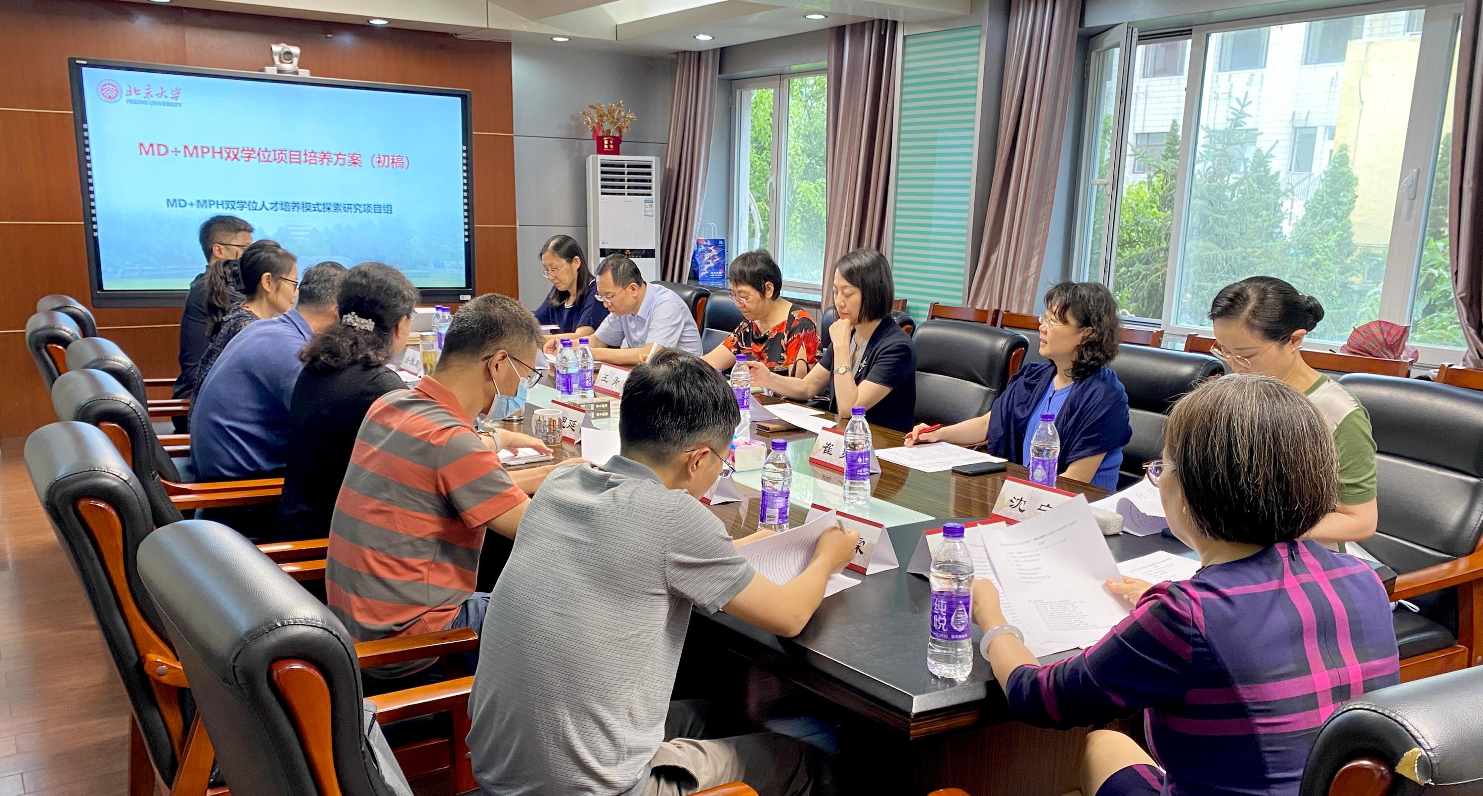 2023年7月12日,北京大学公共卫生学院“MD+MPH培养方案”论证会在新公卫楼220会议室顺利举办。北京大学医学部段丽萍副主任,北京大学研究生院医学部分院王青副院长、崔爽副院长,北京大学第一医院杨莉副院长、北京大学人民医院王天兵副院长、北京大学第三医院沈宁副院长、北京大学第六医院司天梅副院长、北京大学肿瘤医院教育处陈扬霖副处长,公共卫生学院詹思延院长、郝卫东书记、许雅君副院长、王胜锋院长助理,以及北京大学研究生院医学部分院学位办公室、公共卫生学院教学办公室老师参加会议。座谈会由公共卫生学院许雅君副院长主持。