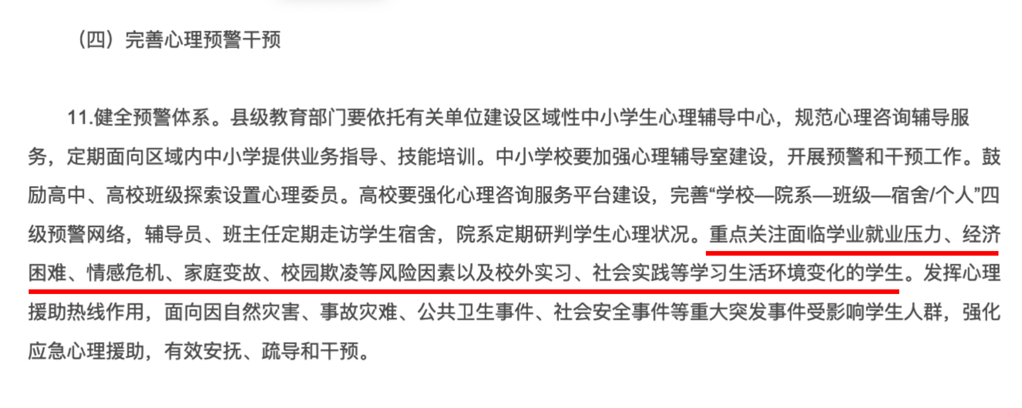 2023年4月,教育部等17部门联合印发《全面加强和改进新时代学生心理健康工作专项行动计划(2023—2025年)》,将学生心理健康工作放在更加突出、更加重要的位置,并将防范和治理“校园欺凌”列为重点关注内容。