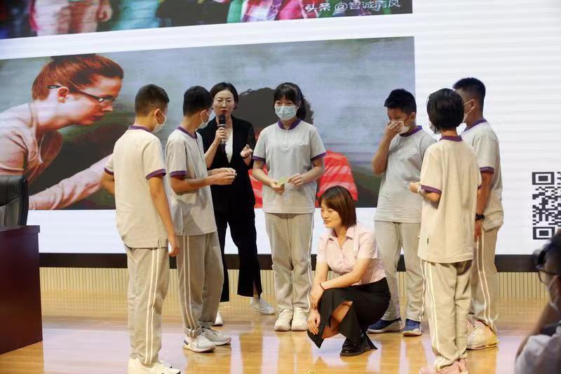 图7 刘娟律师用“角色扮演”方式在学校做辅导, 请老师同学换位体验“被贴标签”同学的感受