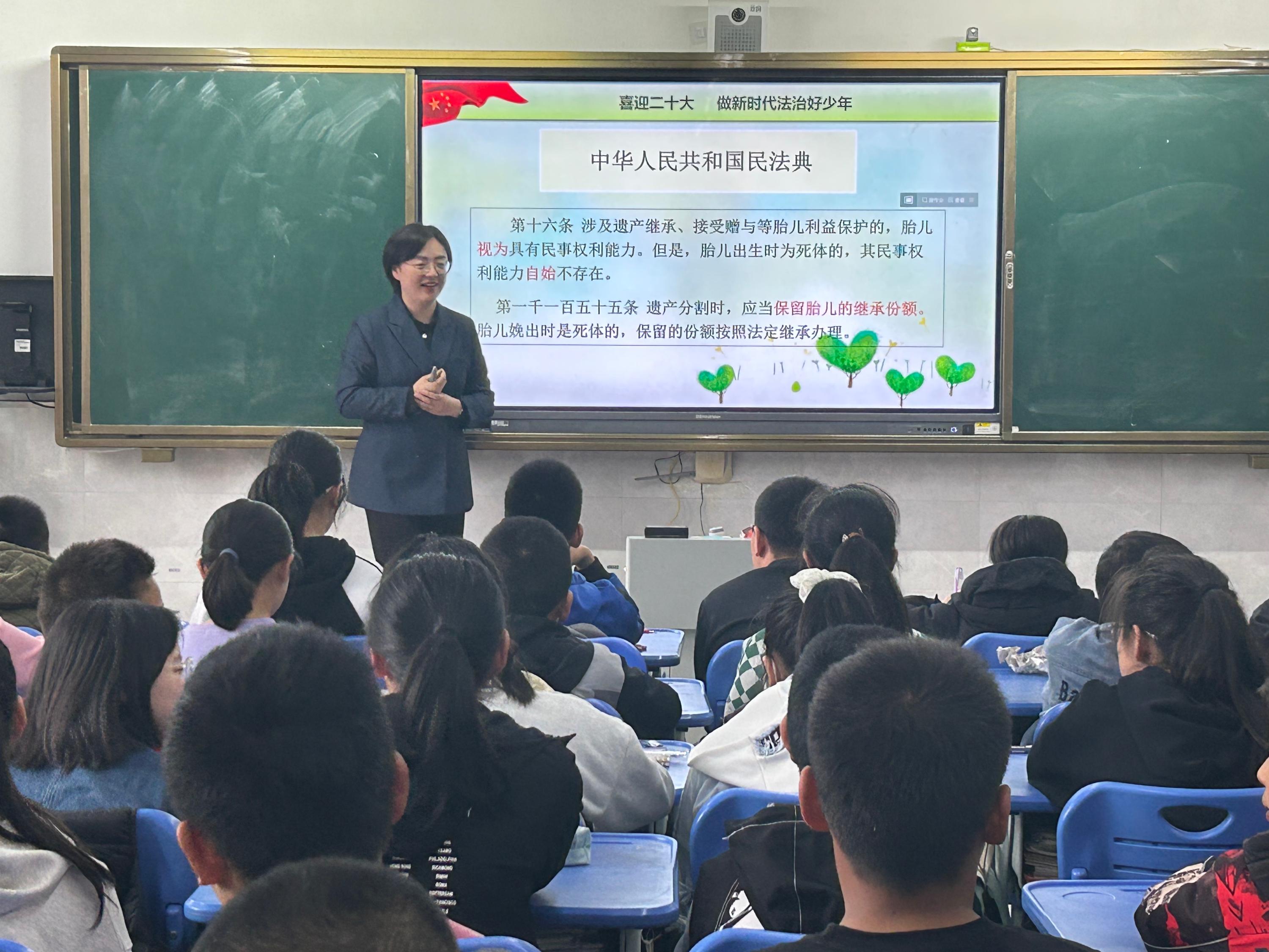 图8 邹秀圆律师走进学校为同学们讲解《民法典》