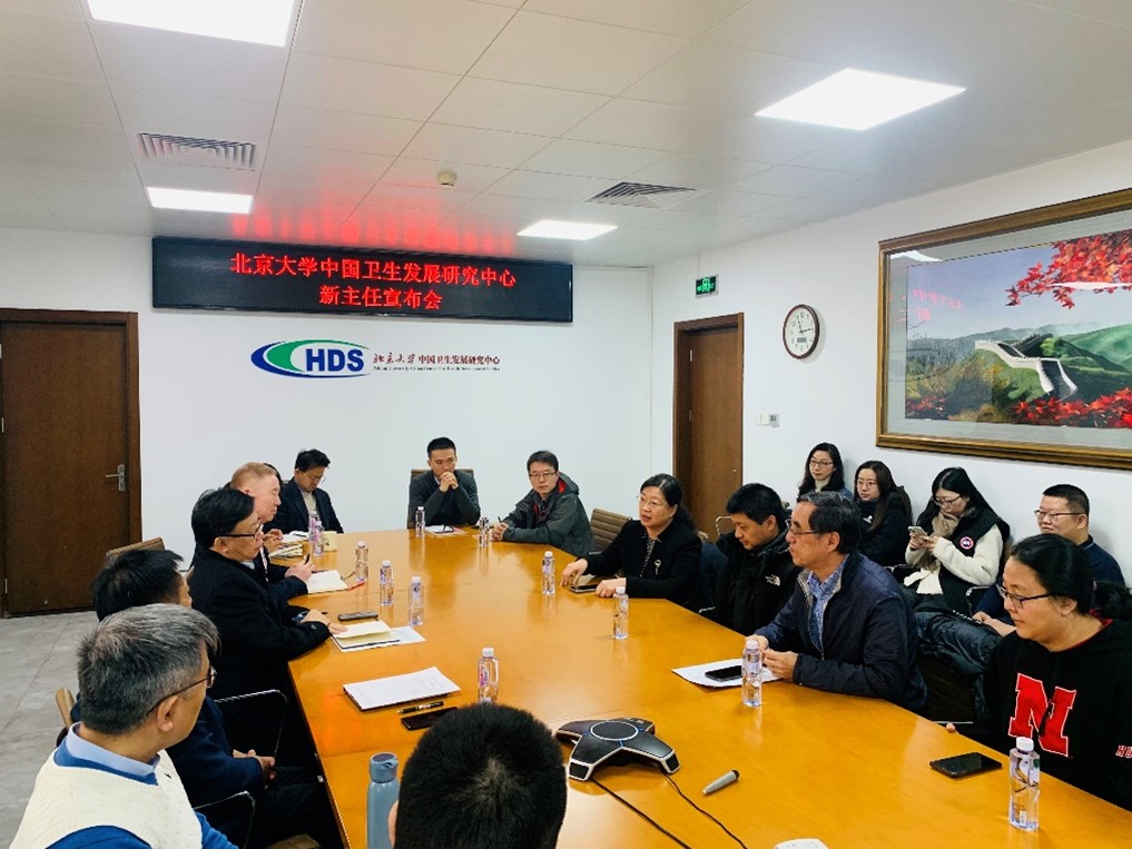 2024年3月4日,北京大学中国卫生发展研究中心新主任宣布会在树华楼108会议室顺利召开。北京大学医学部人事处处长丁磊、公卫学院院长詹思延、党委书记郝卫东、学院院长助理兼党院办主任刘杰出席会议,中心新老主任及教职工等25人参加会议。会议由郝卫东书记主持。