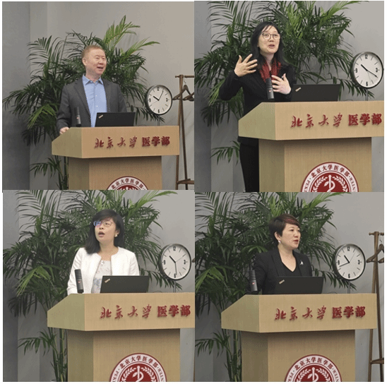 北京大学中国卫生发展研究中心副主任刘晓云、北京大学公共卫生学院卫生政策与管理系副主任杨莉、北京大学公共卫生学院全球卫生系副主任黄旸木、北京大学健康医疗大数据国家研究院副院长张路霞代表各自系所介绍情况