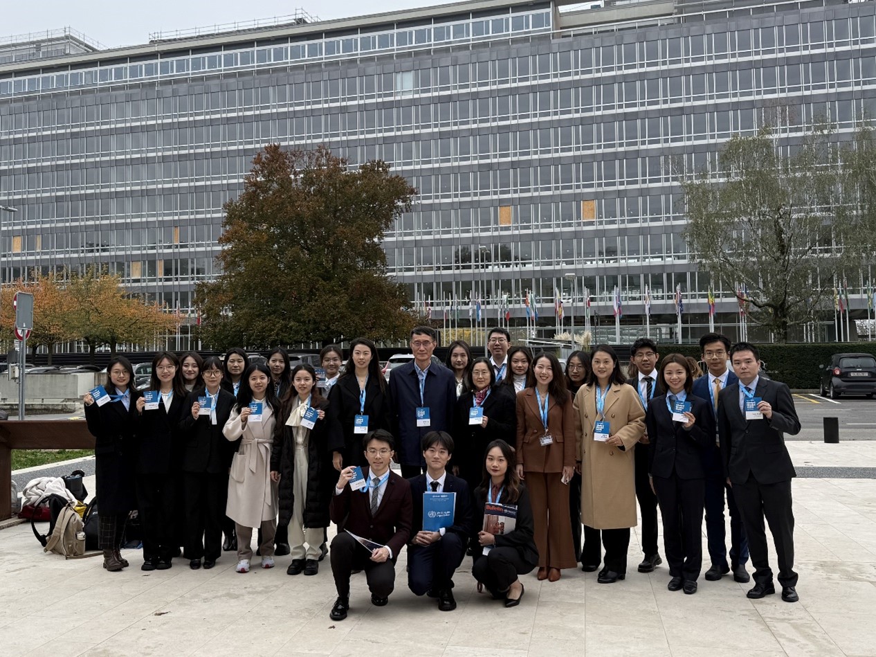 为全面推进全球卫生人才培养工作,北京大学医学部国际合作处与公共卫生学院于2024年10月联合启动第二期全球卫生治理青年人才能力提升培训项目,并将目标聚焦在瑞士日内瓦,派遣师生交流团参加2024年模拟世界卫生大会。此次活动旨在拓展学生国际化视野,提升综合素质,打造复合型的全球卫生治理专业人才。交流团由北京大学医学部国合处处长孙秋丹、公共卫生学院党委副书记张景怡、公共卫生学院全球卫生学系主任许铭、副主任金音子和刘芳静等5名教师带队,共有来自公共卫生、临床医学、医学英语等专业的20名学生参加。
