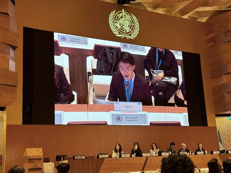 在为期四天的2024模拟世界卫生大会上,各国青年代表分享了对全球卫生挑战的深刻理解,并通过小组磋商与政策协商等形式,进一步增强了对多边合作的认识。闭幕式上,来自北京大学的谢家兴和刘梦泽同学获选,分别在消除脊髓灰质炎及终结结核病战略两个技术议题下发言。