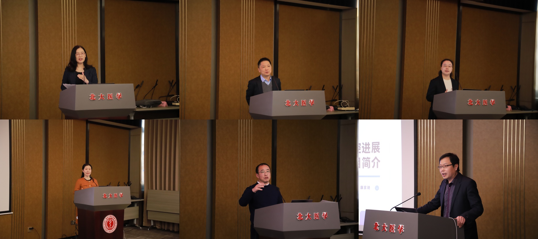 左上至右下依次为:北京大学公共卫生学院社会医学与健康教育系主任常春教授、上海交通大学医学院附属同仁临床医学院(筹)常务副院长蔡泳教授、北京大学公共卫生学院社会医学与健康教育系曹望楠副研究员、北京大学公共卫生学院社会医学与健康教育系副主任孙昕霙教授、复旦大学公共卫生学院预防医学与健康教育教研室高俊岭副教授、中国肝炎防治基金会项目管理处处长康家琦副研究员。
