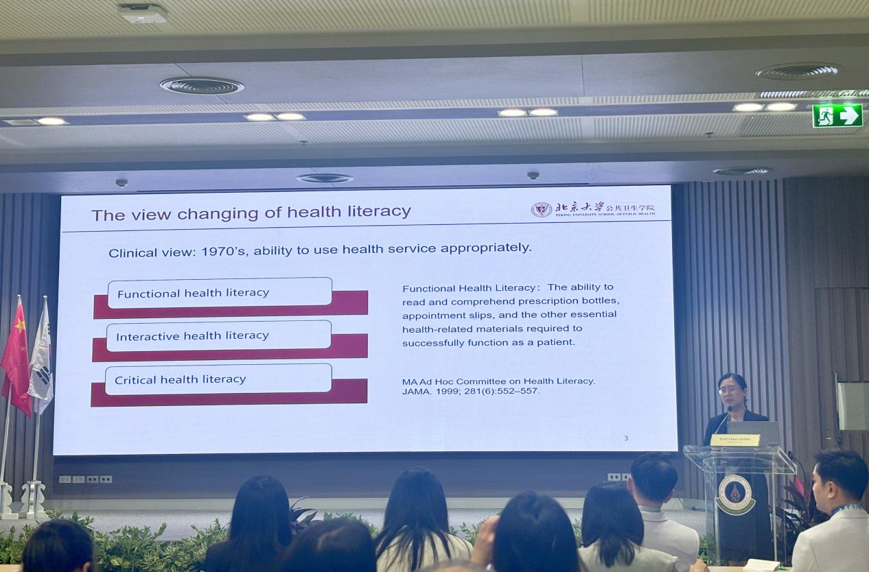 之后是大会主旨报告环节,北京大学公共卫生学院常春教授以“Health Literacy Development in China”为题,作了大会第一场主旨报告。她系统阐述了中国在全民健康素养提升工作中积累的丰富经验、取得的显著成就以及未来的发展方向。常春教授指出,近年来,中国政府通过政策引导、社区动员和多部门协作,构建了全方位、多层次的健康素养提升体系,显著提升了公众的健康素养水平。她强调,健康素养的提升不仅是健康中国战略的重要组成部分,也是实现全民健康覆盖的关键环节。她呼吁各国在健康素养提升方面加强合作与交流,共同应对全球性健康挑战。