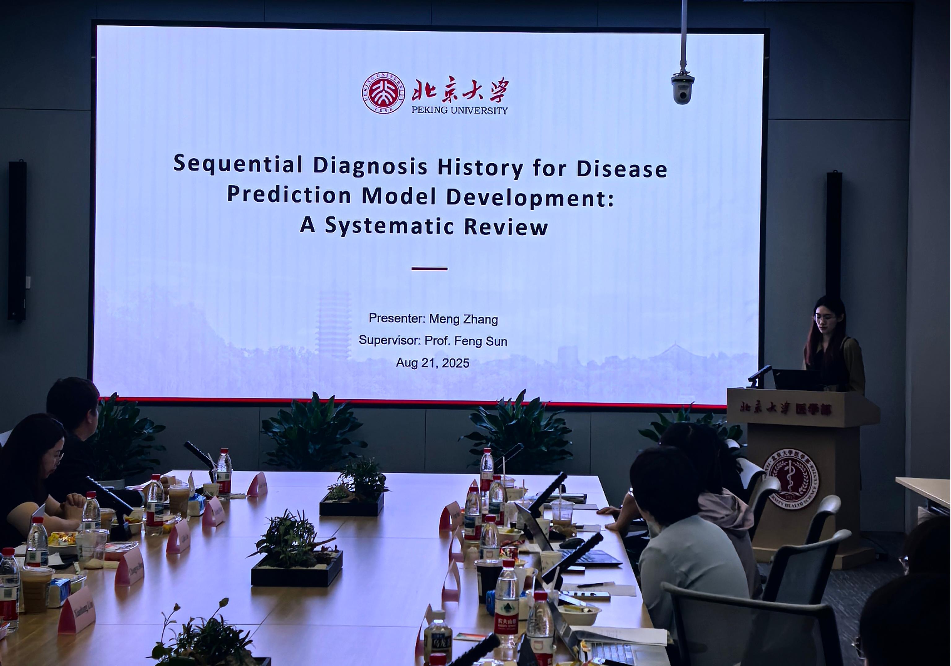 随后,来自北京大学的多位青年学者展示了所在团队的最新研究成果,涵盖中国临床研究现状与挑战、临床预测模型评估工具开发、GLP-1受体激动剂安全性研究、病史序列构建预测模型的研究现状、机器学习与回归方法比较等多个前沿课题。Franco教授对各位汇报者的研究课题发表意见并提供专业建议和指导,现场气氛热烈,讨论深入。(图5-图9)