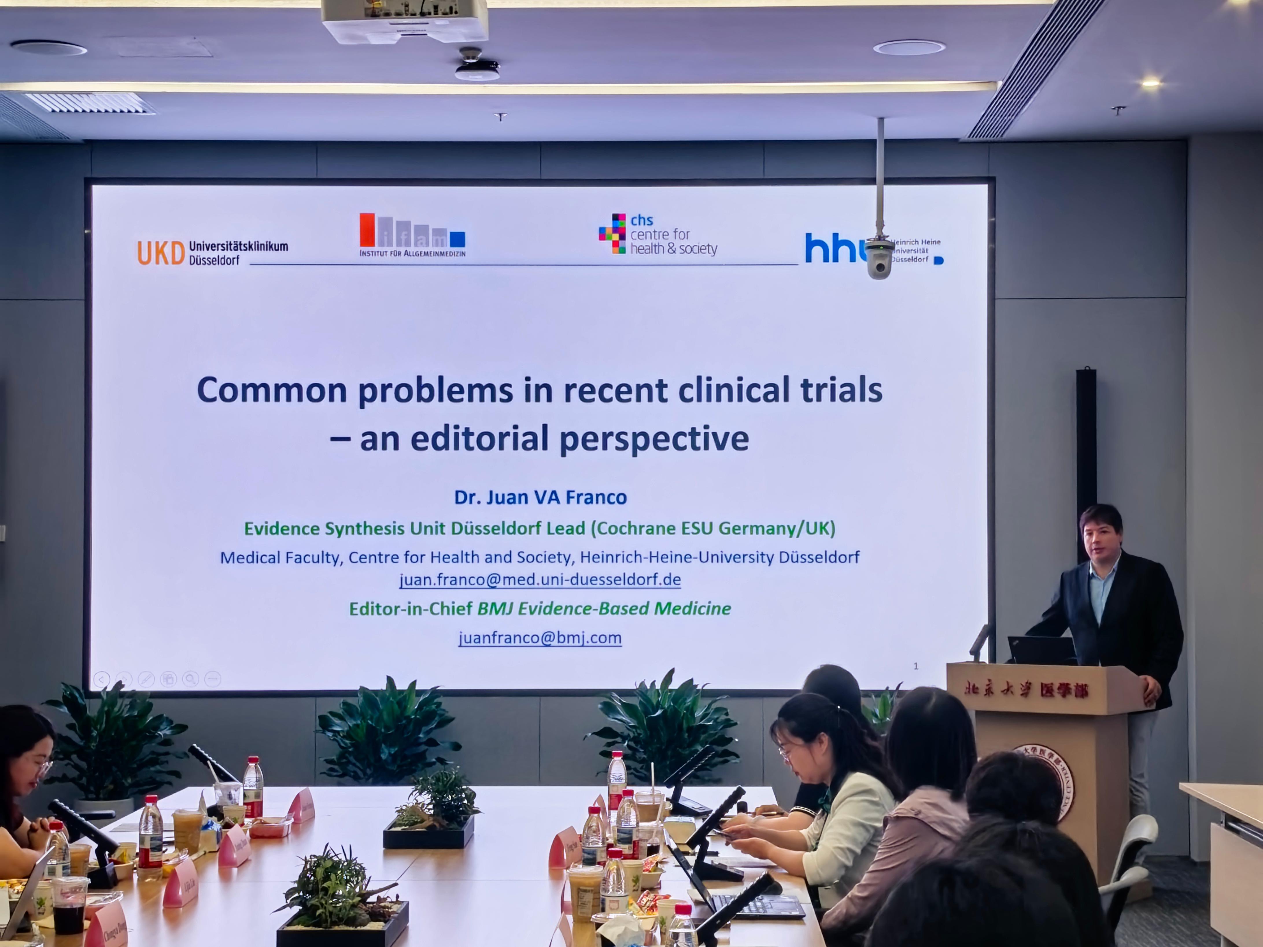 本次会议邀请了BMJ EBM主编Juan VA Franco教授及其团队代表段玉婷副主编(广州医科大学附属中医医院),以及来自北京大学公共卫生学院、循证医学中心、临床研究所和相关医院的专家学者、青年教师和研究生代表共同参与。北京大学公共卫生学院院长詹思延教授进行开幕致辞,并简要介绍了学院的相关情况。(图1)