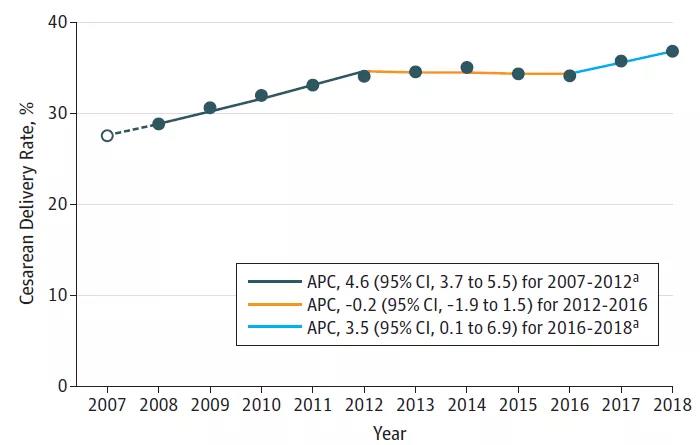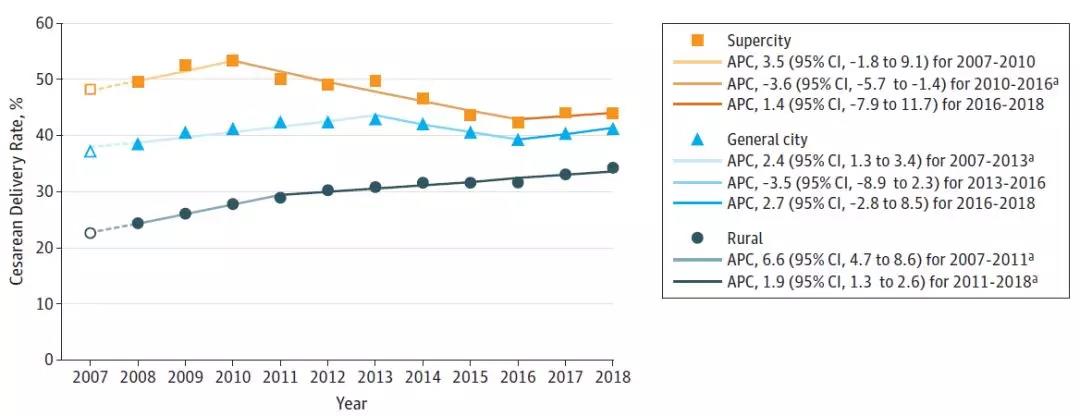 文章通过分析我国大陆省份相关分娩资料,发现全国剖宫产率由2008年28.8%升至2018年36.7%。研究采用Joinpoint回归等方法,进一步揭示研究期间剖宫产率“先升后稳、稳后又升”:2012年之前剖宫产率年均上升4.6%,2012至2016年大体平稳,2016年之后年均上升3.5%。研究发现,特大城市、一般城市和农村地区变化趋势迥异:特大城市剖宫产率年均降低2.1%,一般城市维持平稳,农村地区年均上升2.9%。研究还发现,特大城市和农村地区剖宫产率差距由2008年的25.1个百分点缩小至2018年的9.6个百分点,缩小幅度超过60%。文章也分析了不同阶段剖宫产率差异化走势的可能原因。2012至2016年剖宫产率在经历了之前的上升后趋于稳定,可能与政府系列控制非医学必要剖宫产的相关举措有关,如2014-2016年开展爱婴医院复核将控制非医学原因剖宫产纳入复核指标。2016年以后剖宫产率再次小幅上升可能与农村地区妇幼卫生服务能力持续改善、爱婴医院复核工作结束以及全面两孩政策实施后既往有剖宫产史的高龄产妇增加有关。文章为把握我国剖宫产现状、研判未来形势提供了全面详实的科学数据,对国家完善相关政策有重要参考价值。
