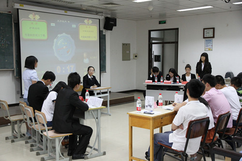 本场比赛的辩题为“考勤制度是利大于弊还是弊大于利”,正方为护理学院代表队,反方为公共卫生学院代表队。四位辩手分别为:一辩赵楠(11级本),二辩张远(12级研),三辩刘念(13级研),四辩赵丹妮(11级本)。