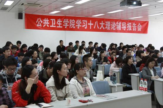 为深入学习贯彻十八大精神,北京大学公共卫生学院党委于2013年4月25日举办了以“决定性阶段的政治宣言和行动纲领”为主题的报告会。报告由中共中央党校马克思主义中国化教研室副主任、中央党校中国特色社会主义理论体系研究中心特约撰稿人、十八大精神中央宣讲团成员李海青教授主讲;公卫学院党委书记郝卫东教授主持了报告会,副书记陈娟教授、詹思延教授以及副院长王志锋教授出席了报告会,学院近180余名党员、积极分子及部分离退休教师前来聆听报告,整个会场座无虚席。