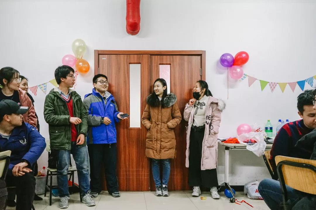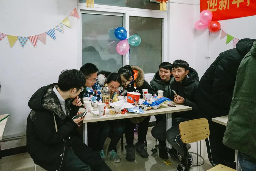 联欢会前,学生会成员们到地下室精心布置,挂灯笼,打气球,贴彩旗,拉横幅,把地下室装饰得充满了节日的喜庆氛围。