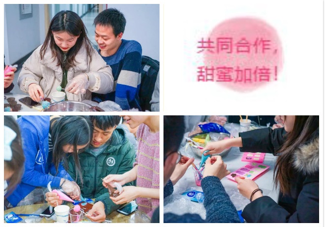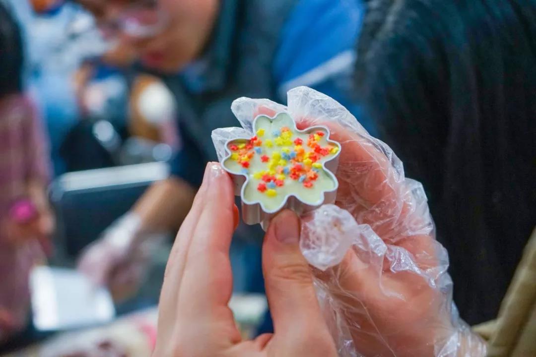在经过简单的指导后,大家便迫不及待地纷纷动手,发挥各自的奇思妙想,制作形状各异、口味不同的巧克力。