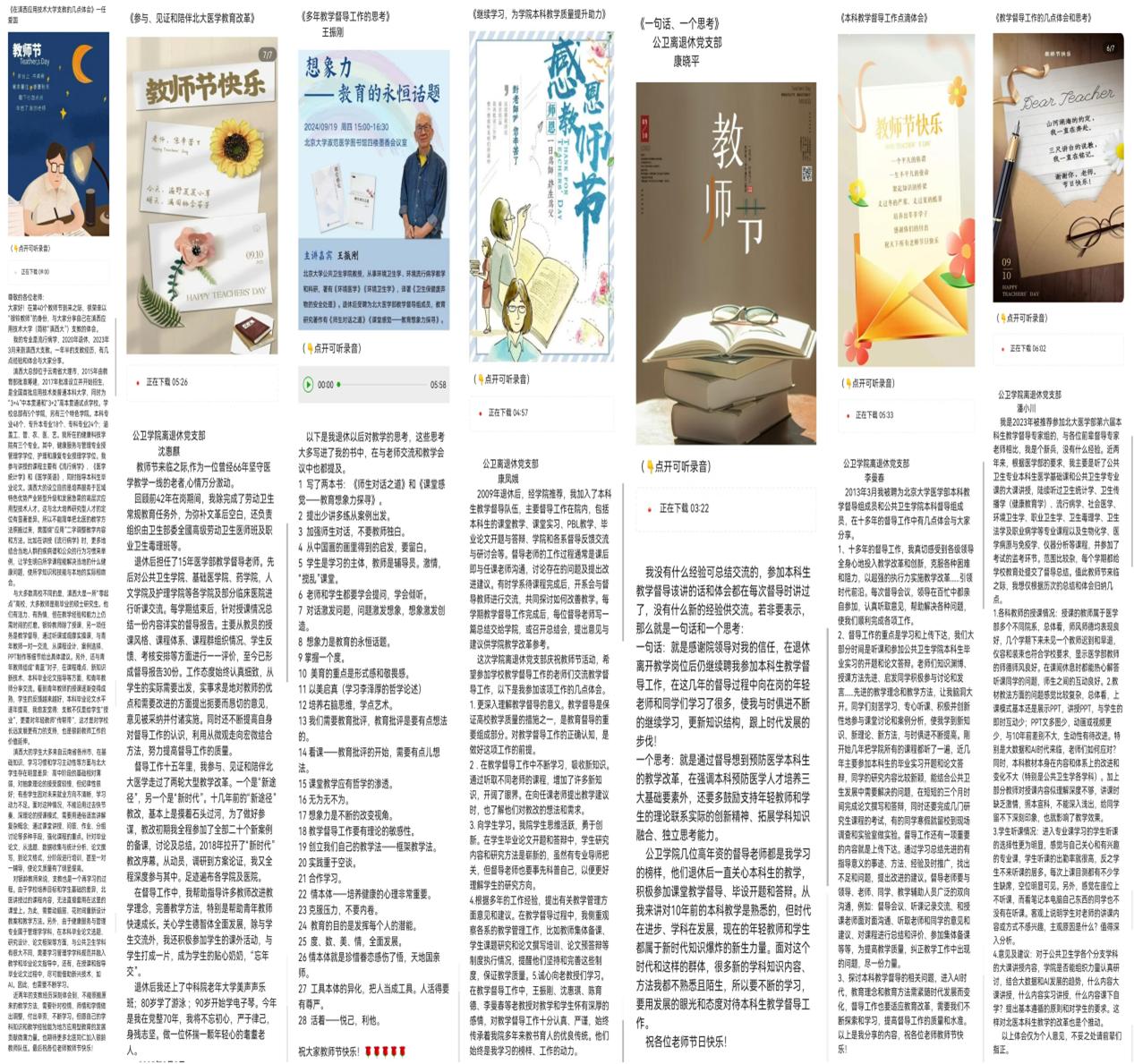 学院全体领导班子成员集体向老教师们发来教师节慰问视频,感谢退休教师为学院建设发展所作出的突出贡献,并表达衷心的节日问候。老教师是学院的宝贵财富,他(她)们的教学经验和学术积淀以及严谨治学的态度、无私奉献的精神是学院发展的基础和精神源泉,当前学院发展正处于推进“双一流”建设与公共卫生领军人才培养关键期,期待老教师们继续发挥优势,为学院发展建言献策作出新的贡献。