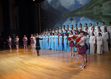 鲜花映衬着笑脸,歌声在礼堂中回荡,伴随着一阵阵如潮的掌声,我们成功的演绎了“歌声与微笑” !