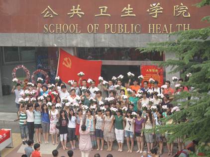 2011年6月29日上午,公共卫生学院“坚定信仰,忠诚奉献”庆祝建党九十周年主题活动在学院门前隆重举行。医学部党委副书记李文胜出席了本次活动。公共卫生学院各党支部书记、离退休党员、教工和学生党员200余人参加了庆祝活动。