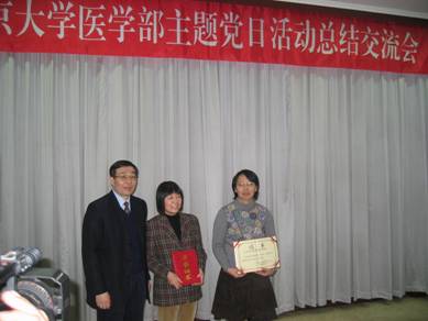 2008年12月5日,北京大学医学部“迎奥运,为党旗增辉”党日活动总结交流会在会议中心206会议室隆重召开,医学部党委书记敖英芳同志以及党委组织部、宣传部和各二级单位党委领导同志出席会议并担任本次党日活动评比的评委。本次党日活动评比共有医学部和各附属医院43个基层支部参与,11月27日经过第一轮评选后有13个基层党支部进入今天的最终评比,会上各基层支部的代表分别汇报了各支部党日活动的情况,营养支部组织委员张玉梅副教授最后一个出场,她以饱满的热情、清晰的条理把营养与食品卫生学系党支部和研究生党支部于2008年6月联合举办的“我营养、我运动、我健康”主题党日活动向评委和与会代表做了全面细致的汇报,生动形象的讲演得到了评委的一致好评,最终“我营养、我运动、我健康”主题党日活动以全校第一名的优异成绩荣获北京大学医学部2008年“迎奥运,为党旗增辉”党日活动评比一等奖。会后,敖英芳书记对本次党日总结交流活动做出了很高的评价,他指出参加本次交流的各党日活动丰富多彩,全面展现了我校各基层党支部开展基层党建工作的热情和成效,也为今后全校基层党建创新工作的开展提供了有意义的经验和借鉴。