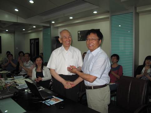 在全场热烈的掌声中孟院长向王振刚教授赠送了对于教师具有重要意义的纪念品——电子教鞭;活动结束了,教师们尤感意犹未尽,关于哲学、关于教师、关于综合素质的讨论仍在继续……