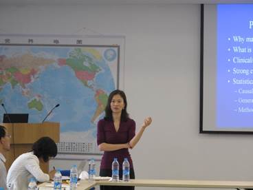 中青年教师面临着教学科研、晋升职称等诸多方面的重重压力,如何能在世界顶级杂志发表高质量的研究文章,成为大家共同关心的话题。2013年6月13日原卫三教(卫生发展研究中心三楼会议室),来自卫生发展研究中心的兼职教授、美国匹兹堡大学公共卫生学院卫生政策与管理系药物经济教研室主任张昱婷副教授(终身教授)与大家交流与分享了她在新英格兰杂志(NEJM)发表4篇文章的经验和体会并介绍她发表的两项研究:美国老人医疗保险(Medicare)中药品保险PART D的经济影响研究。孟庆跃院长、教学双语活动发起人吴涛老师及30多名中青年教师、卫生发展研究中心的20多名师生共约60人参加了此次活动,来自卫生政策与管理系的杨莉老师主持了此次双语教学活动。