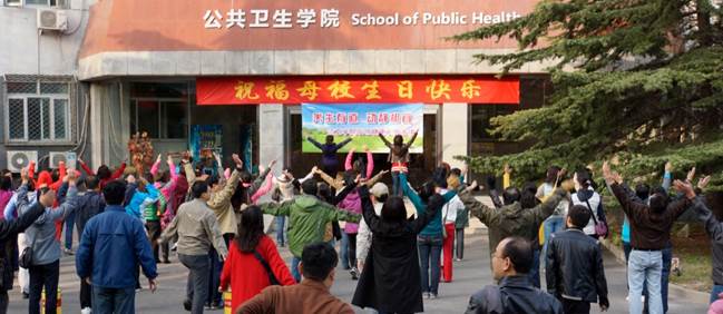 清晨,刚刚过完101岁生日的北医格外美丽,我院教职工们身着休闲运动装,欣然聚集在学院大门口“祝福母校生日快乐”的横幅下,共做广播操,为今天的远足健身活动热身,在这火热的场面中,享受共同锻炼的快乐,同时向母校表达“要为祖国医药卫生事业健康工作更多年”的决心。之后,在学院党委副书记、工会主席詹思延老师的鼓舞和带领下,老师们怀着兴奋的心情向西山国家森林公园进发。学院副院长王志锋、学院党委副书记陈娟老师欣然加入远足队伍。