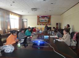 会议由主管教学的劳环系副主任贾光教授主持,在简单地介绍了本次会议主题后,劳环系何丽华副教授从“工作内容、学校概况、院校交流、高原工作与生活”四个层面全面地介绍了本学期所开展的西藏支教工作,报告期间由马文军副教授进行补充介绍和说明。