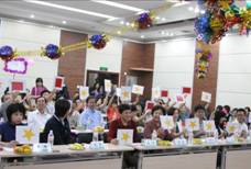 本次比赛得到了各系及相关科室的大力支持,各系均派出教师参赛,共计参赛选手18人,本次比赛赛制新颖,提倡团队精神和全民参与,选手分为“红旗队”和“金星队”两队,各位选手均表现出超强的实力,势要为自己的队伍赢得胜利。评委由来自学校的7位嘉宾评委和来自各系的18位大众评委组成。为缓解比赛的紧张气氛,胡永华院长为大家演唱了《北京颂歌》,把比赛的气氛推向了高潮,大家在《漫步人生路》、《英雄赞歌》、《母亲》、《精忠报国》、《飞天》、《前门情思大碗茶》……等一首首优美动听的歌曲中度过了一个欢乐的下午。最后“金星队”以5比4的微弱优势赢得了胜利,获得了“祖国在我心中公卫学院卡拉ok歌唱大赛”团体优胜奖,“红旗队”获得了团体优秀奖。