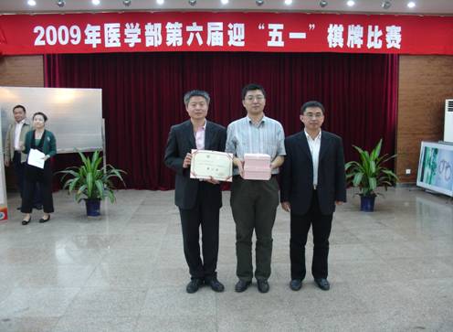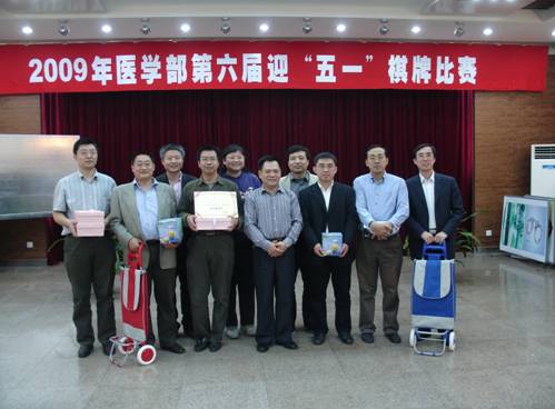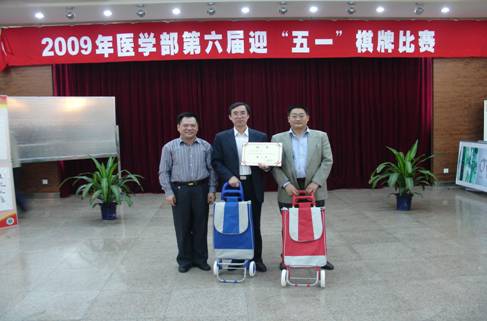 在4月30日的“拖拉机”比赛中,我院老师经过充分准备,合理搭配组队选手,强强联合,再一次把“拖拉机”比赛的冠、亚、季军一举囊括,成为医学部棋牌比赛的三连冠,并因此获得医学部工会特别颁发的“冠军蝉联奖”。为公卫学院赢得了荣誉。