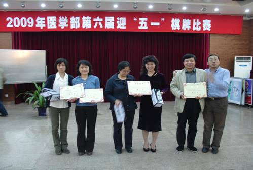 在五一劳动节来临的前夕,我院代表队于4月28日和4月30日分别组队参加了医学部工会组织的棋(跳棋)、牌(扑克牌)比赛。