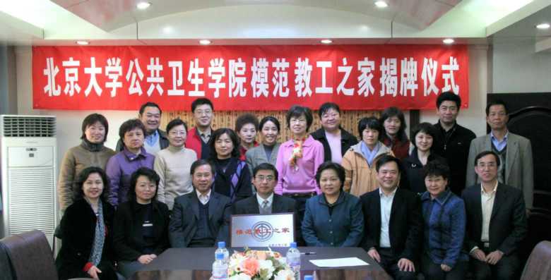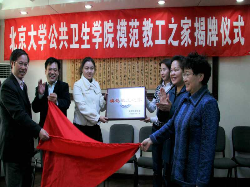 3月25日下午北京大学公共卫生学院“模范教工之家揭牌仪式”在公共卫生学院隆重举行。医学部党委副书记顾芸、医学部工会主席王春虎、医学部工会干部王金华、刘昱、公共卫生学院党政领导班子胡永华、王燕、吴明、郝卫东、徐善东及公共卫生学院工会委员、工会小组长等40多人参加揭牌仪式。