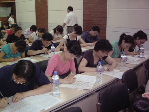 2008年7月4号下午2点,由医学部工会组织的“北京大学医学部青年教师硬笔书法比赛”在医学部工会活动中心隆重举行。本次比赛旨在为青年教师互相切磋书法技艺,互相学习,以达到教师规范今后板书,医生规范病历的书写的目的,同时也丰富了青年教师的业余生活,陶冶了情操。
