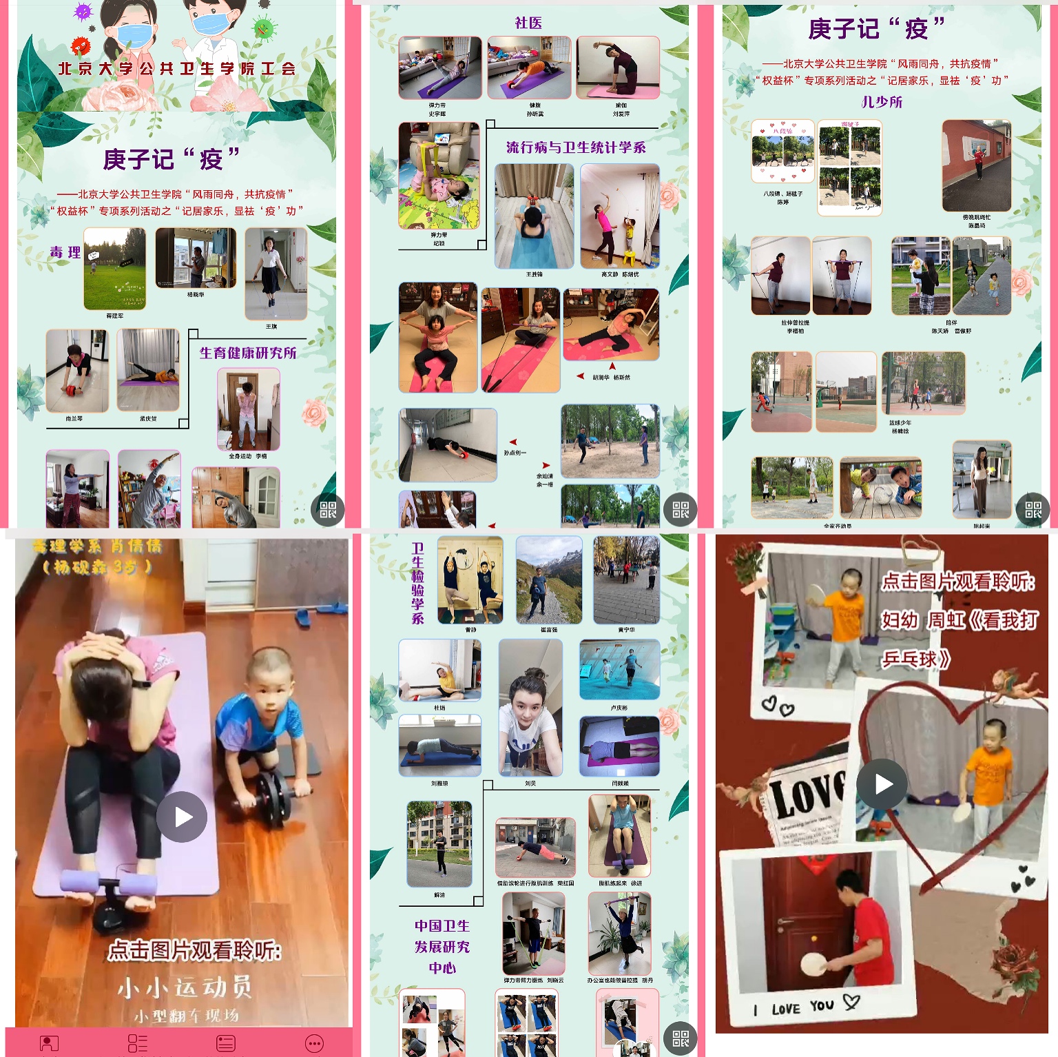 本次活动得到了各系室老师及家属们的大力支持,收到各类作品两百余件,书法绘画构思巧妙,健身律动形式丰富多彩,教职工们参与的热情十分高涨。通过开展云锻炼,教职工们进一步融入了难得的阖家快乐生活,为居家工作、学习、生活增添色彩,愉悦身心,健康互动,积极体现了公卫人“为党分忧、为国奉献、为民造福”的责任感和使命感!